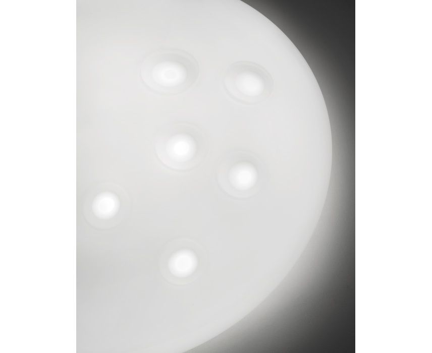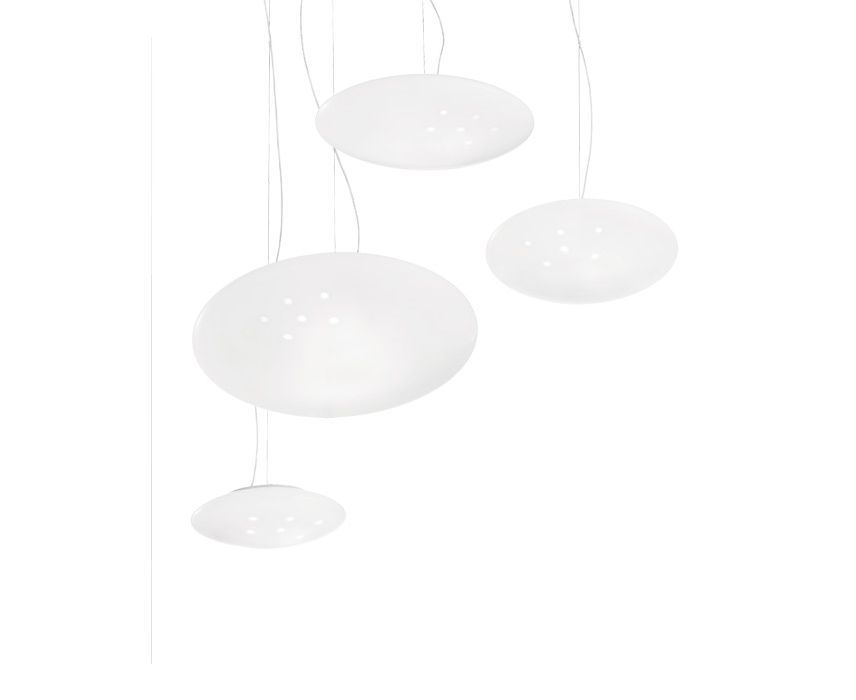 Главной характеристикой Nuvole, доступной в четырех различных размерах, является декор ручной работы на поверхности диффузора, который позволяет просвечиваться сквозь него всем кристальным и молочно-белым уровням, ее составляющим.
