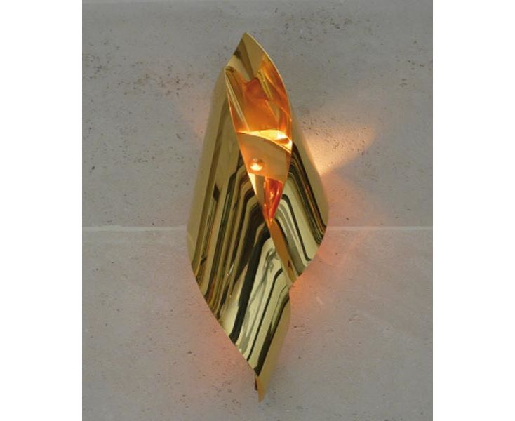 Эти изогнутые листья металла отражают декор и свет с теплом и современностью нашего времени. Основание - лакированное золото.