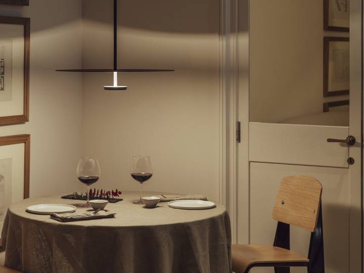 Еда - это универсальный язык, а обеденный стол - это декорация для театра, который есть еда. Достижение правильного баланса между видением и оценкой, но не насыщением стола светом, является тонким балансирующим действием. Подвесной светильник Flat от Ichiro Iwasaki отбрасывает свет от плоских металлических кругов, плавающих в пространстве, обратно в центр обеденного стола.