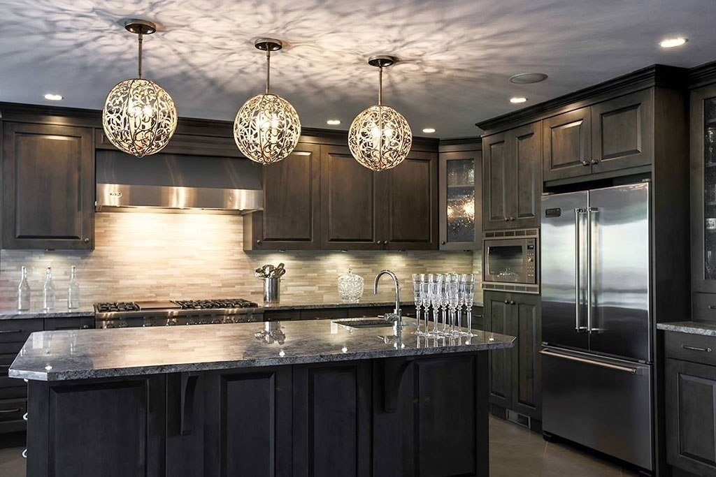 Чтобы достичь такого правильного сочетания всех задач и окружающего освещения, вы захотите создать освещение на разных уровнях: споты (также называемые утопленные или встраиваемые светильники), освещение в нижней части шкафа и подвесное освещение.