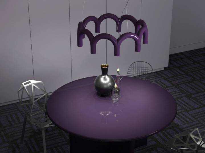 Лампа Arch имеет графическое изображение, образованное многократно изгибающимся куском трубчатого металла, и Oblure описывает ее как «заманчивую и привлекательную». Arch путешествует от света к свету и в целом представляет собой подвесной светильник, который напоминает архитектурные арки, своды, построенные на протяжении веков, и демонстрирует их устойчивость на протяжении веков.