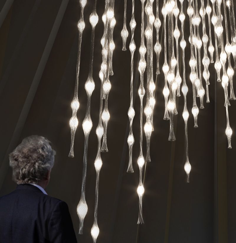 "Я был очарован этим диким светом и мне удалось передать его в стеклянных пузырях. Я выбрал именно эту форму, так как она походить на идеальный круг обычно встречающийся в природе? Независимо от того, говорим ли мы про капли росы на траве или о молекулах».