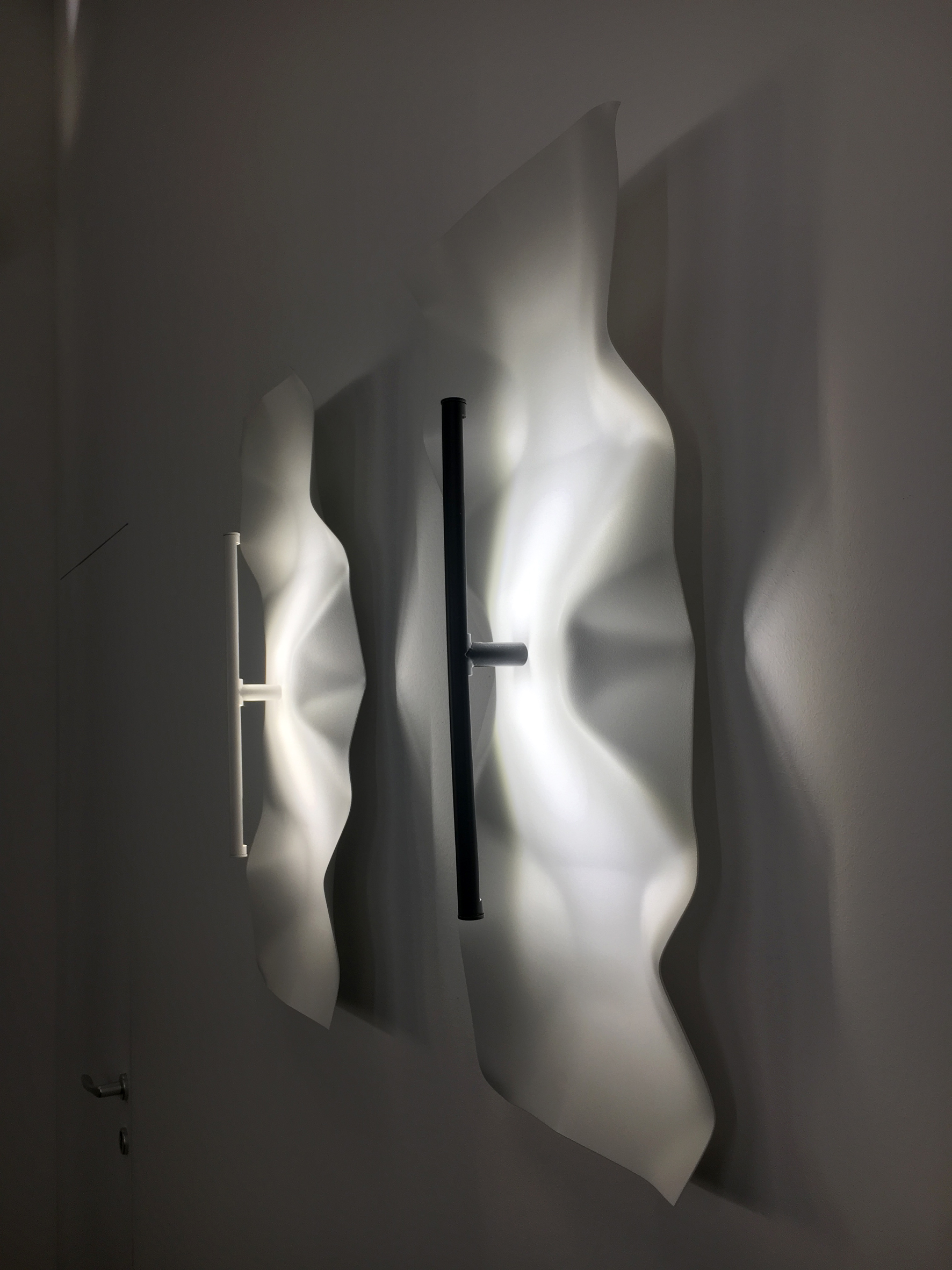 Одна из новых коллекций - Sei Fuori! включает в себя настенные, настольные и напольные версии с источником света, размещенным, таким образом, что он полностью покрывается водой, создавая игру эфирного и «обернутого» света, доступного для любого пространства.