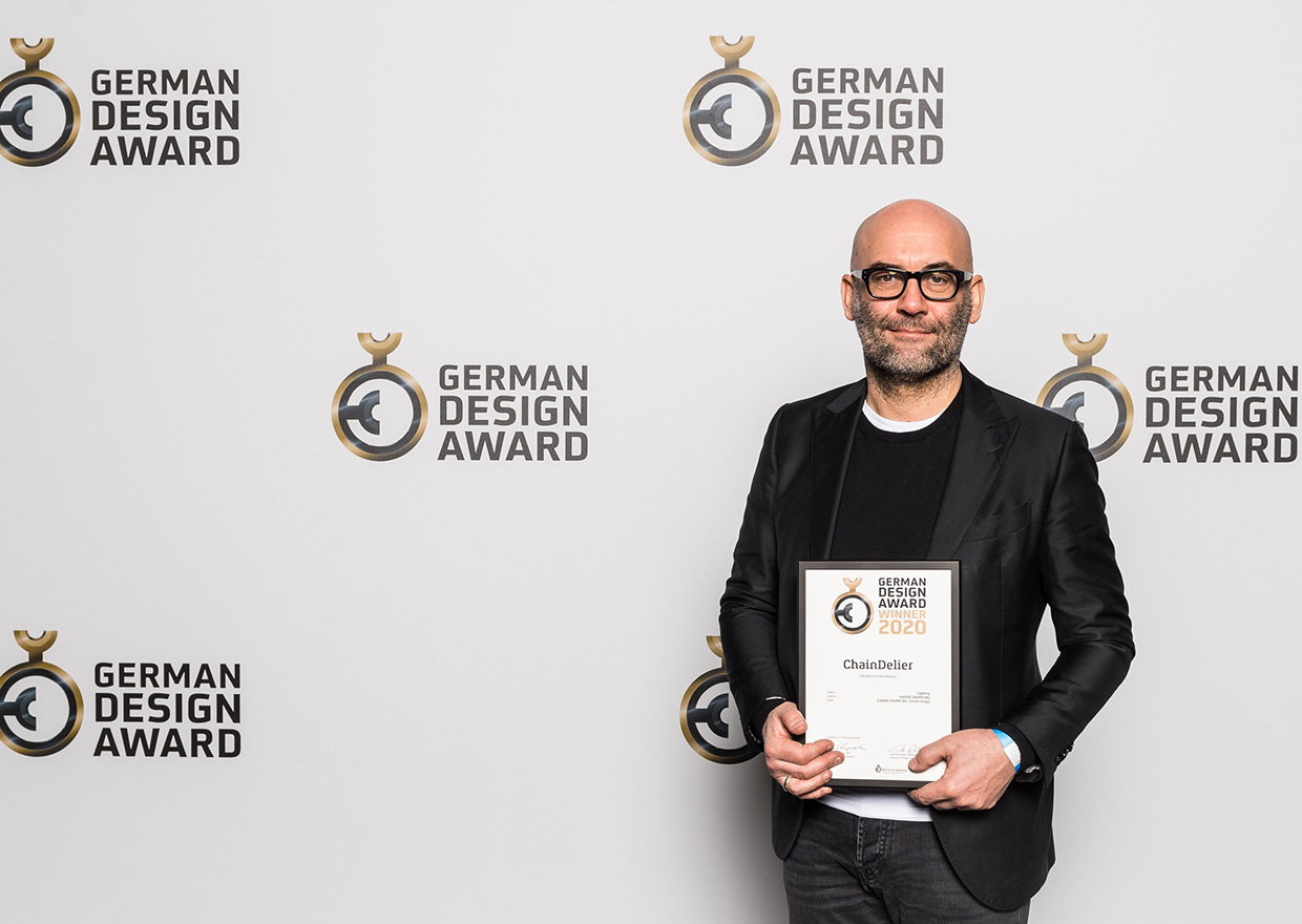 Мы рады сообщить, что новинка 2019 года от итальянского бренда Davide Groppi - светильник ChainDelier был награжден немецкой премией в области дизайна 2020 German Design Award как «Лучший дизайн продукта в категории освещения».