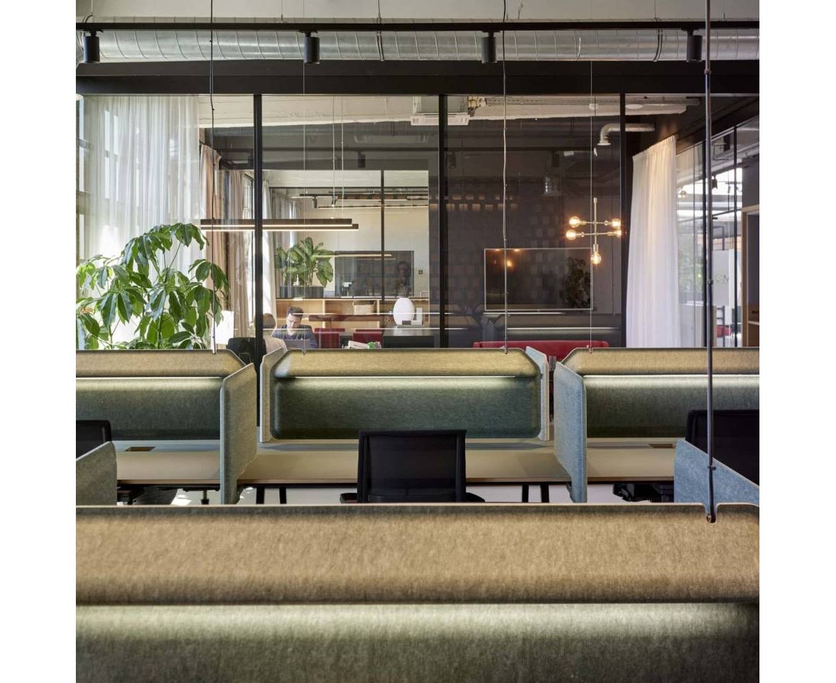 Откройте для себя приятный способ работы за общими столами. AK 2 предлагает именно это. Этот умный продукт был разработан для офисов с открытой планировкой, кабинетов и коворкингов. Это больше, чем просто лампа - помимо освещения рабочего места, AK 2 также служит настольным экраном и акустической панелью. Все, что вам нужно, чтобы оставаться сосредоточенным и продуктивным. AK 2 возможно использовать в двух форматах – подвесном и настольном. Оба доступны в одиннадцати цветовых смесях ПЭТ-войлока. Подвесной АК 2 имеет регулируемые шнуры.