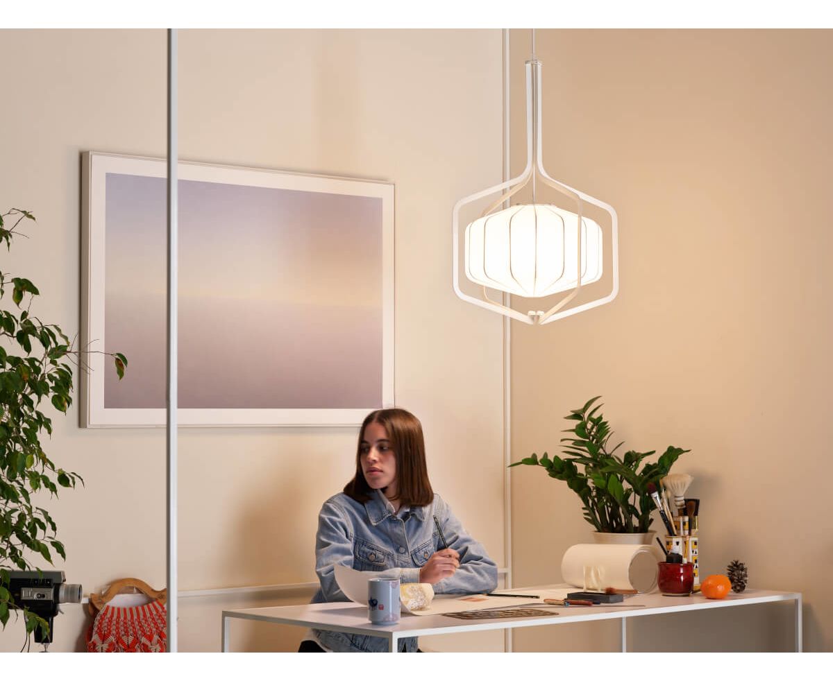 Inside Out празднует простоту с перевернутым дизайном. Подвесной светильник имеет стальную раму, окрашенную в белый цвет, и подвесной полимерный глобус, который мягко поворачивается, когда активируется естественным потоком воздуха в помещении. Inside Out - это первое в новой коллекции доступных светильников Aqua Creations.