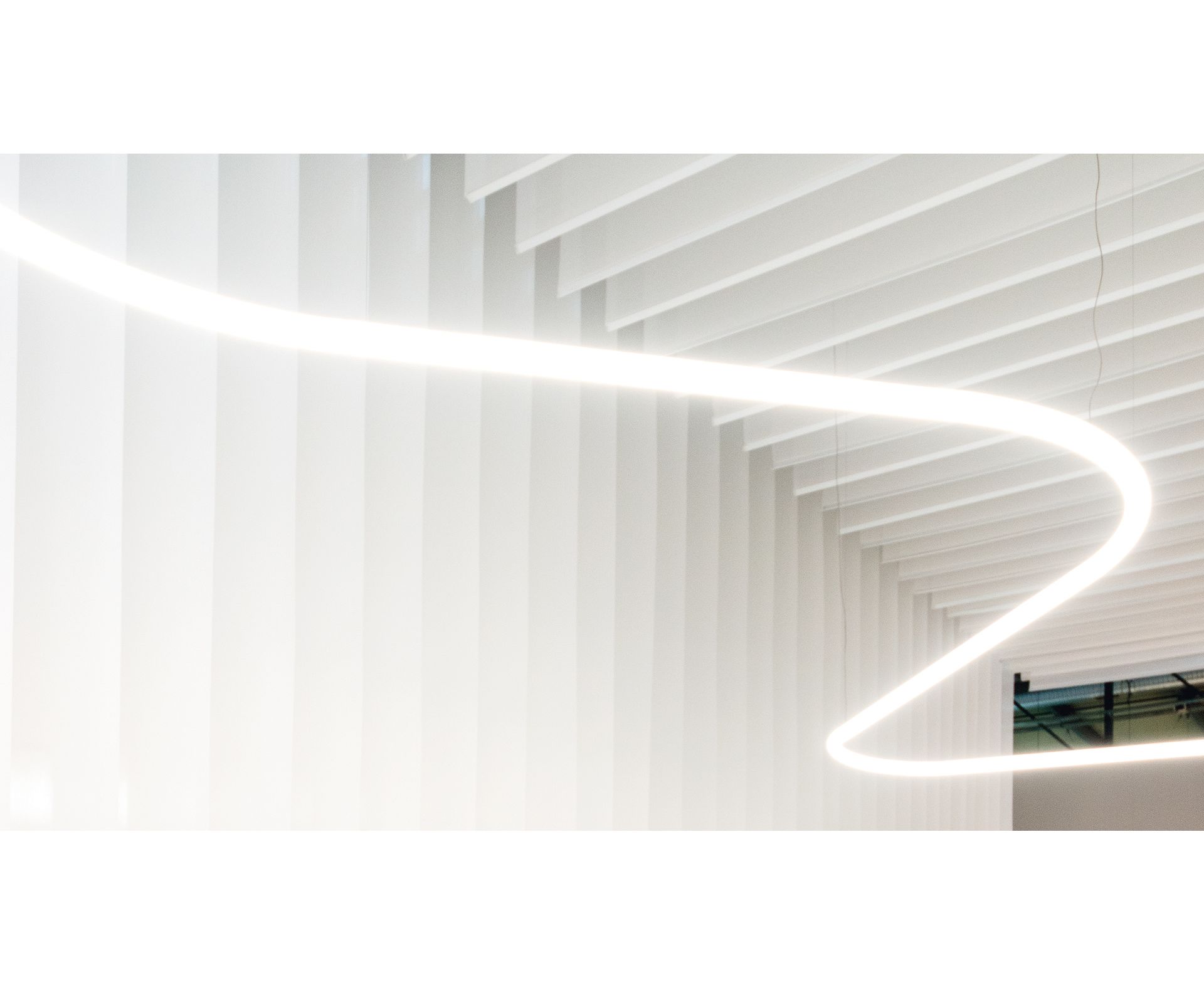 Alphabet of light - это язык освещения, который продолжает расти с новыми изогнутыми элементами, поэтому его можно развивать с большей свободой во всем пространстве. Это основной принцип, который генерирует открытую систему, реализующую только несколько базовых модулей. Благодаря конкретным геометрическим пропорциям, эти модули могут объединяться вместе для создания бесконечных осветительных конструкций от самых элементарных до самых сложных, как линейных, так и изогнутых. Идея BIG сочетается с оптоэлектронной экспертизой компании Artemide, чтобы создать инновационный принцип строительства, который обеспечивает непрерывный и комфортный свет. Это минимальное присутствие, которое скрывает ультра-сложные оптоэлектронные и запатентованные механические инновации, а также новаторский контроль. Систему можно контролировать с помощью приложения Artemide для создания свободы как в геометрическом дизайне, так и в определении динамических уровней производительности, которые могут быть запрограммированы или изменены в реальном времени.
