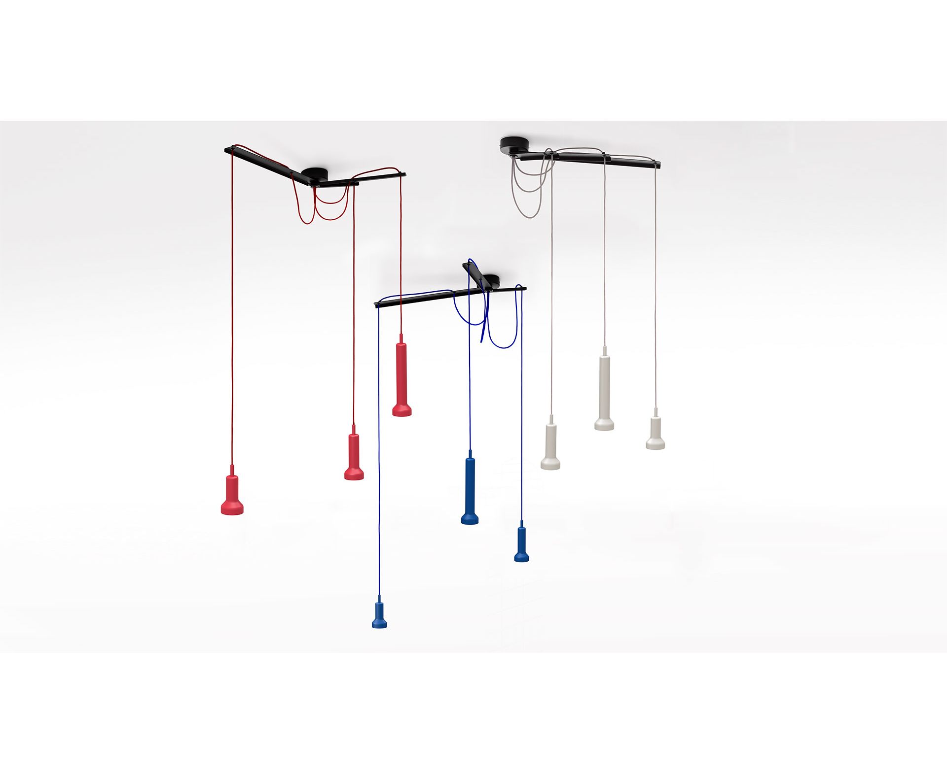 Stablight Smart начинается с интеллектуальной системы подвески Stablight: три рычага, поддерживающие светящиеся тела, могут вращаться, чтобы образовать их в линию или открыть до 360°, все это для того, чтобы адаптироваться к любой пространственной конфигурации и гибко следовать изменяющимся потребностям окружающего пространства. В Stablight Smart корпус лампы голый, без характерного стекла Stablight, но зато яркий, координированный с цветом кабелей, которые их поддерживают.