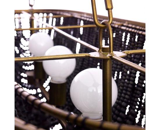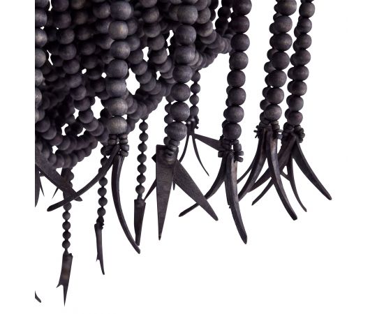 Естественное воплощение классического дизайна, Baja воплощает красоту и баланс в органических материалах. Многослойная трехточечная конструкция изготовлена из дерева и кокосовых шариков — оба темно—серого цвета, которые нанизаны на старинную латунную стальную раму, демонстрируя смесь капризных оттенков. Кисти из кокосовой скорлупы, выполненные в темно-сером цвете, свисают с нитей деревянных бусин и придают дополнительную непрозрачность его воздушной эстетике.