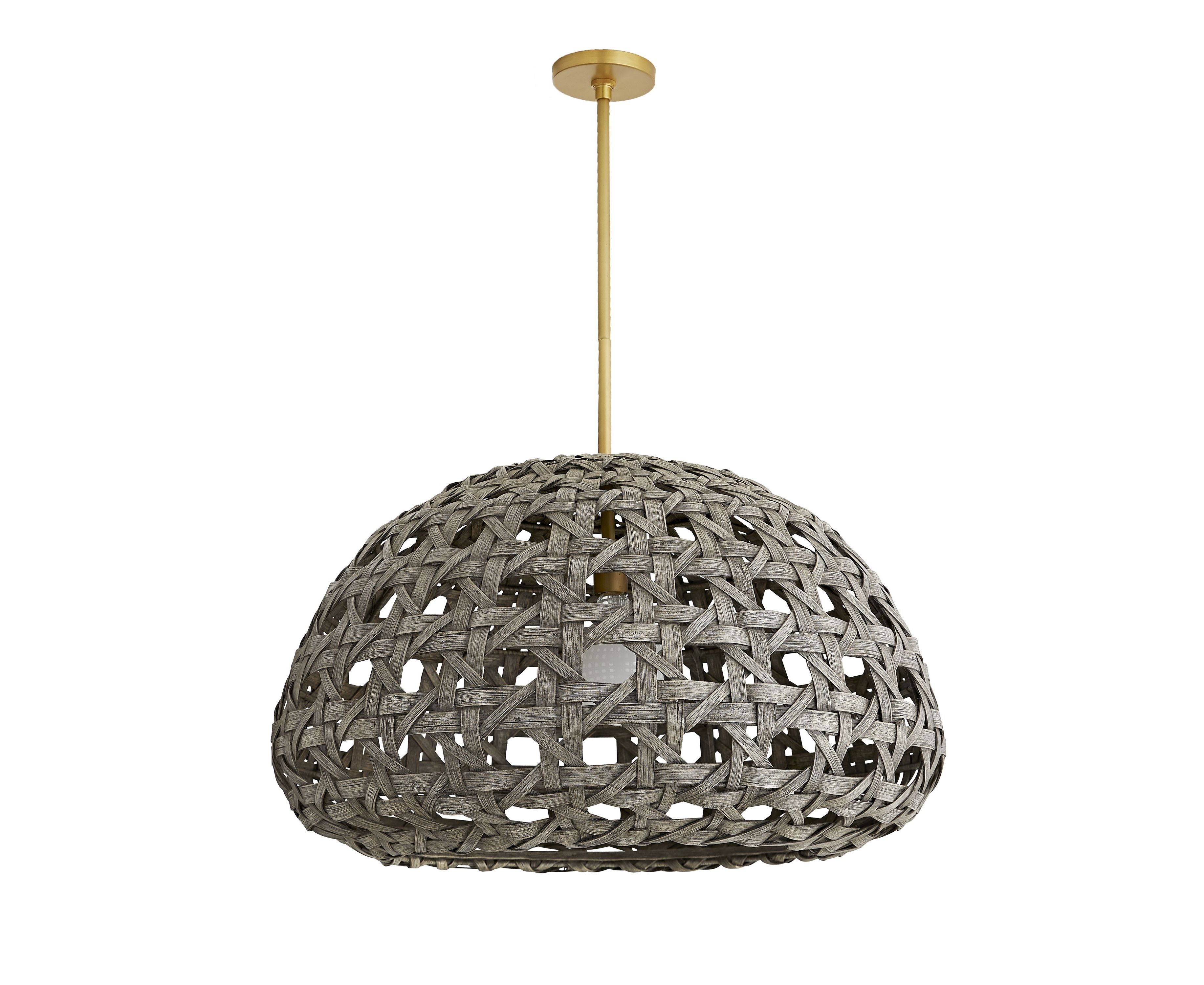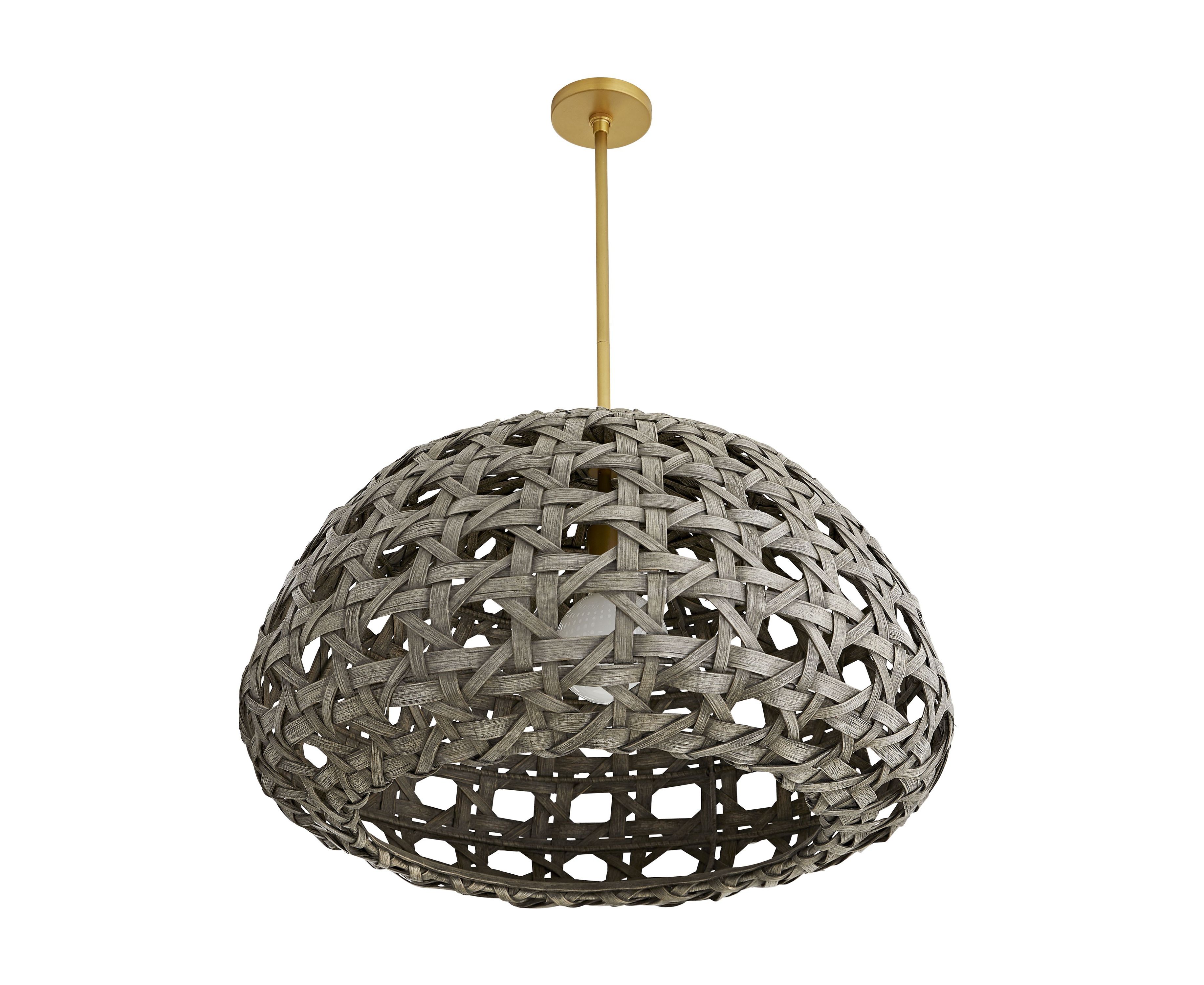 Многовековая техника дает новую жизнь с этим функциональным произведением искусства. Узор плоского переплетения сделан из полюсов ротанга, которые формируются вручную для создания классической формы купола, а затем отделываются. Подвешенная на стальной трубе из античной латуни, ее изогнутая нижняя часть сводится к вершине, что максимизирует ее визуальную эстетику. Открытая форма конструкции позволяет свету свободно течь в занимаемом им пространстве.