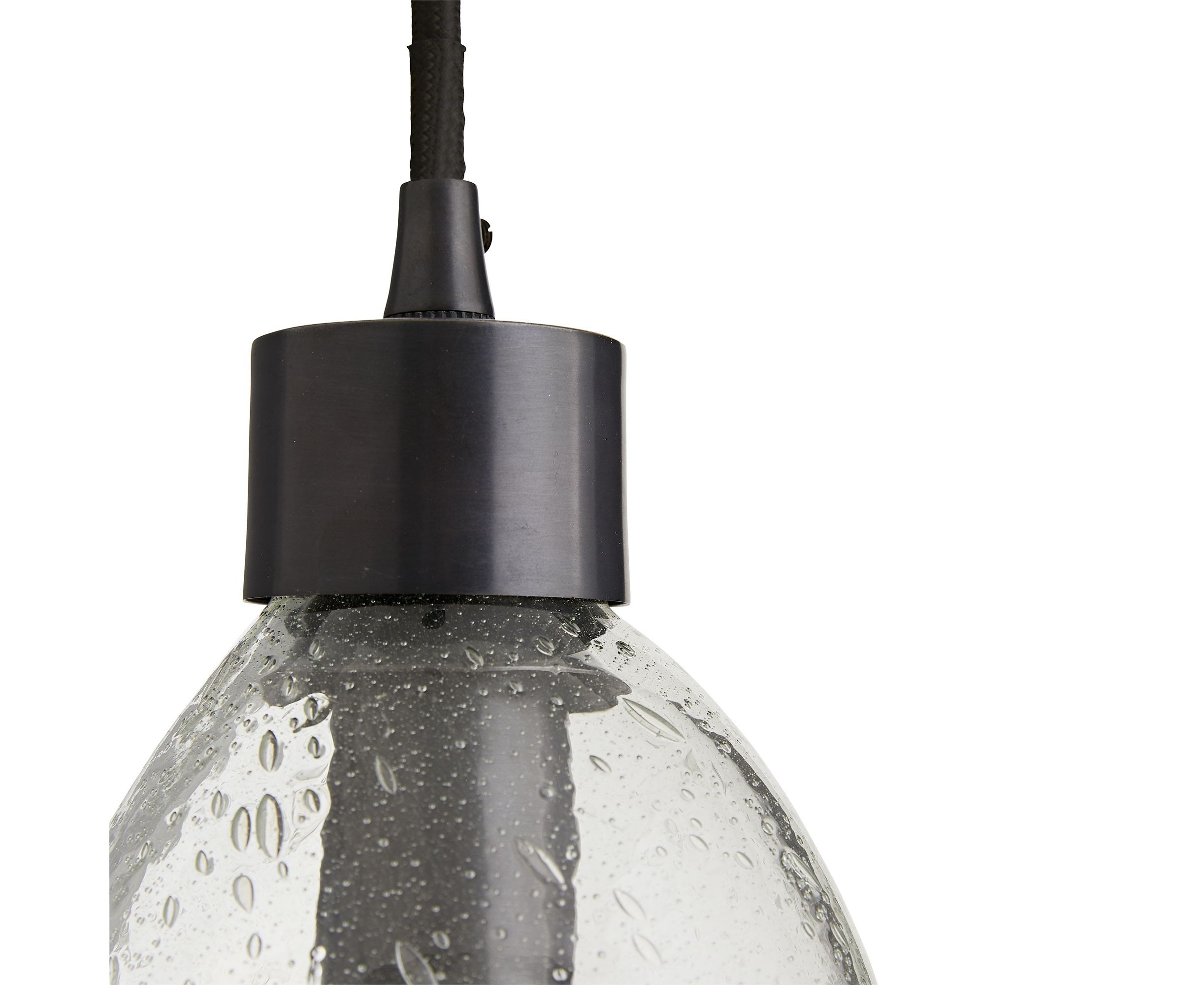 Подвеска из стекла с одним светом имеет черный тканевый шнур и простой круглый бронзовый навес. Прозрачное стекло неправильной формы создает теплое свечение при освещении, что делает его великолепным приспособлением для комнаты. Отделка может отличаться. Рекомендовано использовать с античной большой трубчатой лампой.