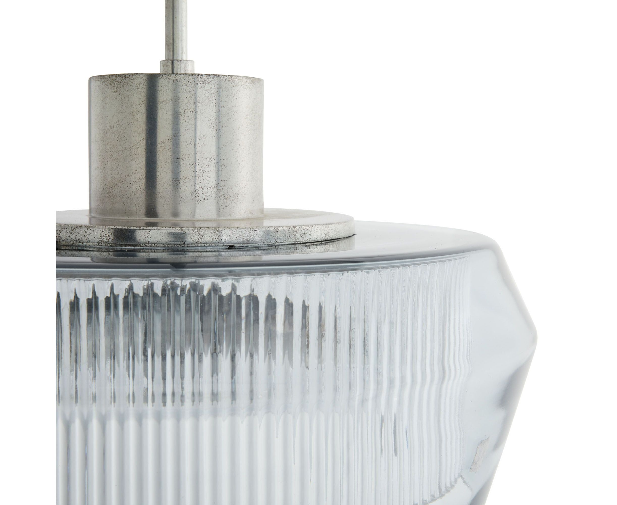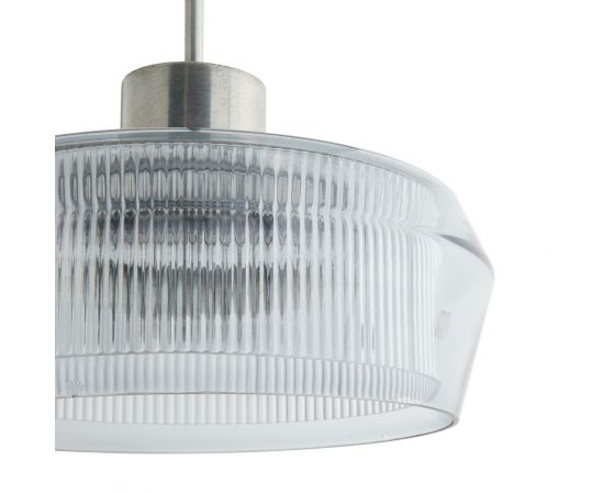 Необычная форма этого подвесного светильника с двойными слоями стекла и оловянной отделкой представляет собой идеальное сочетание формы и функциональности. Прозрачное ребристое внутреннее стекло в сочетании с внешним голубым дымчатым стеклом создают красивый рассеянный свет.