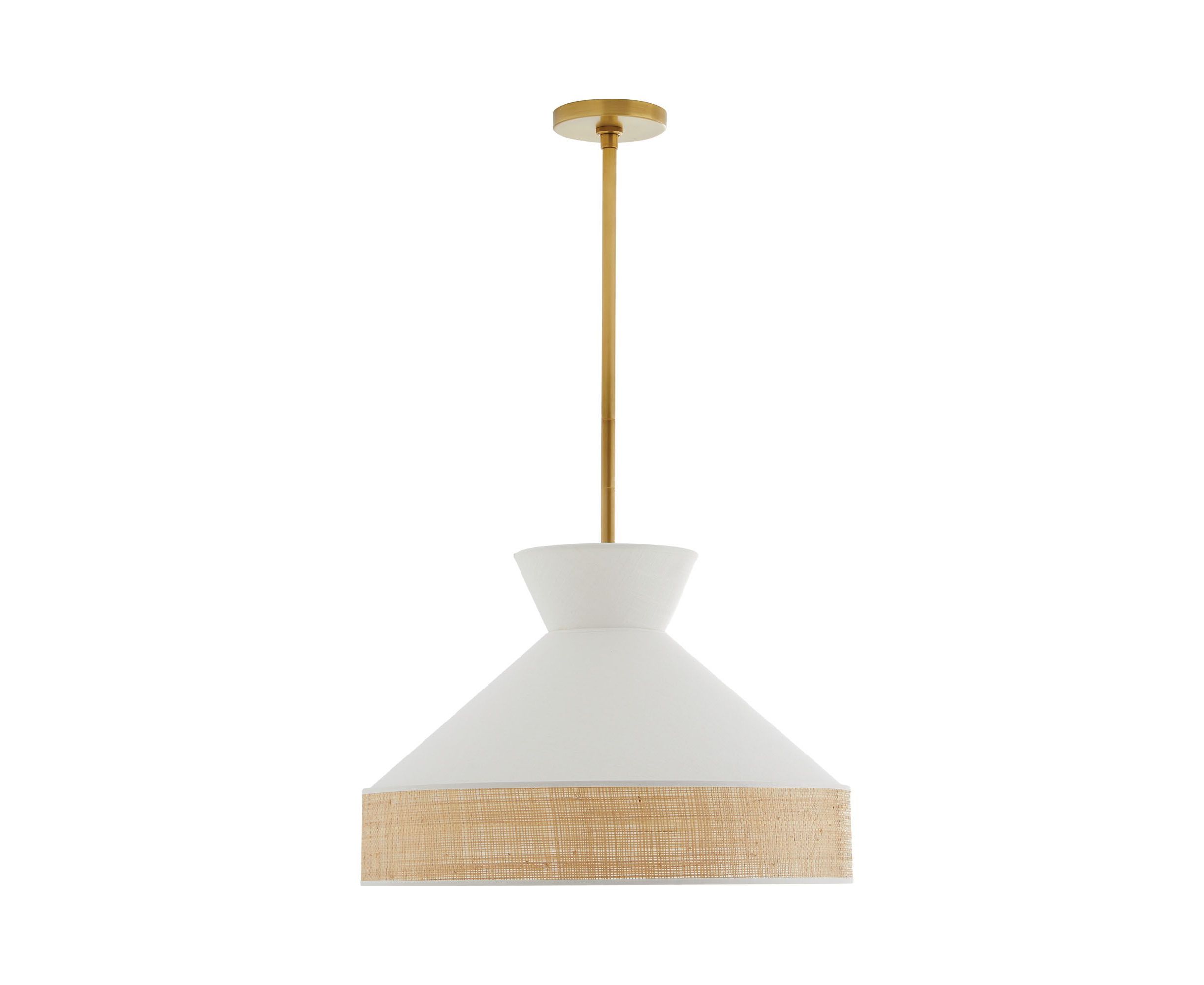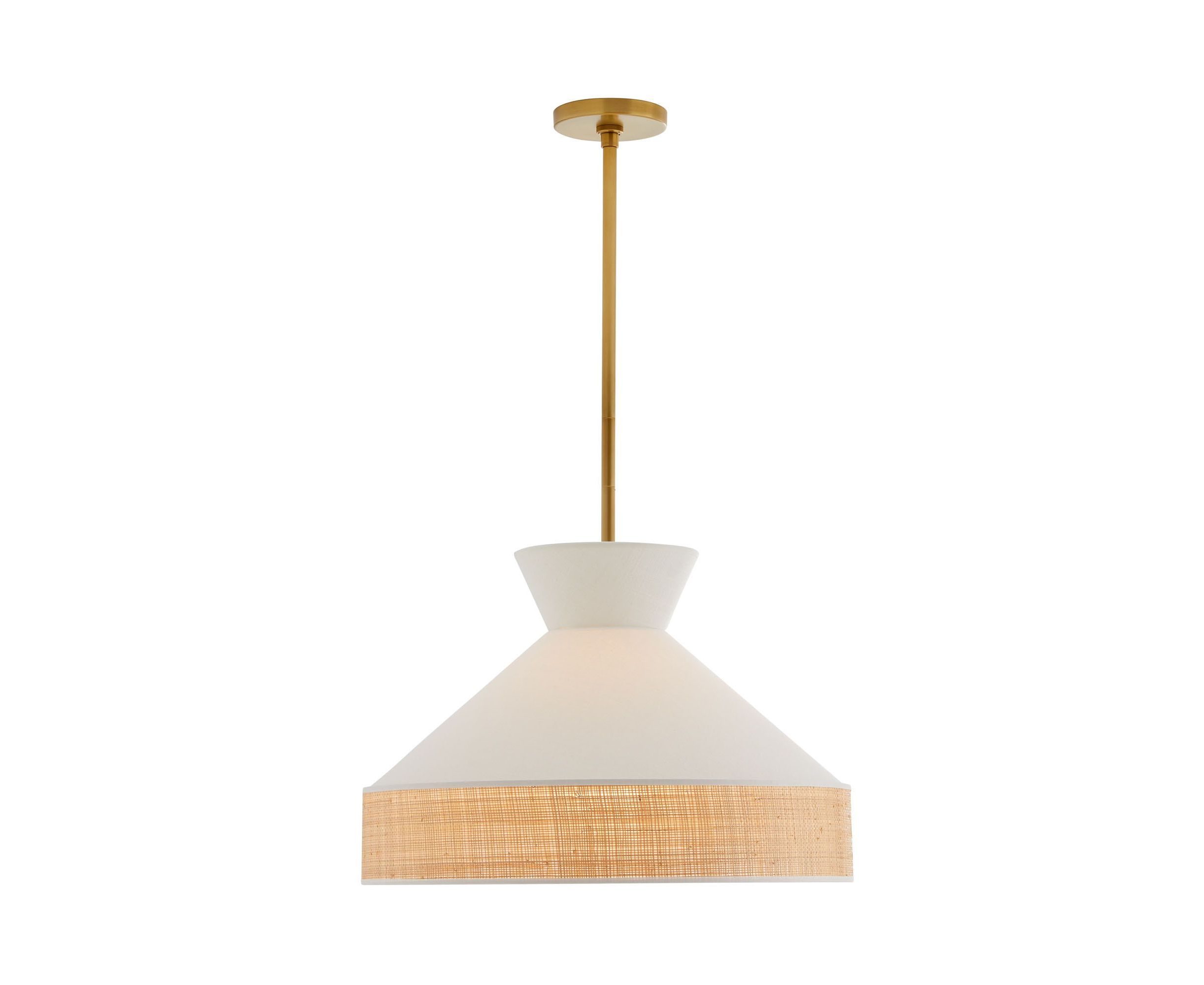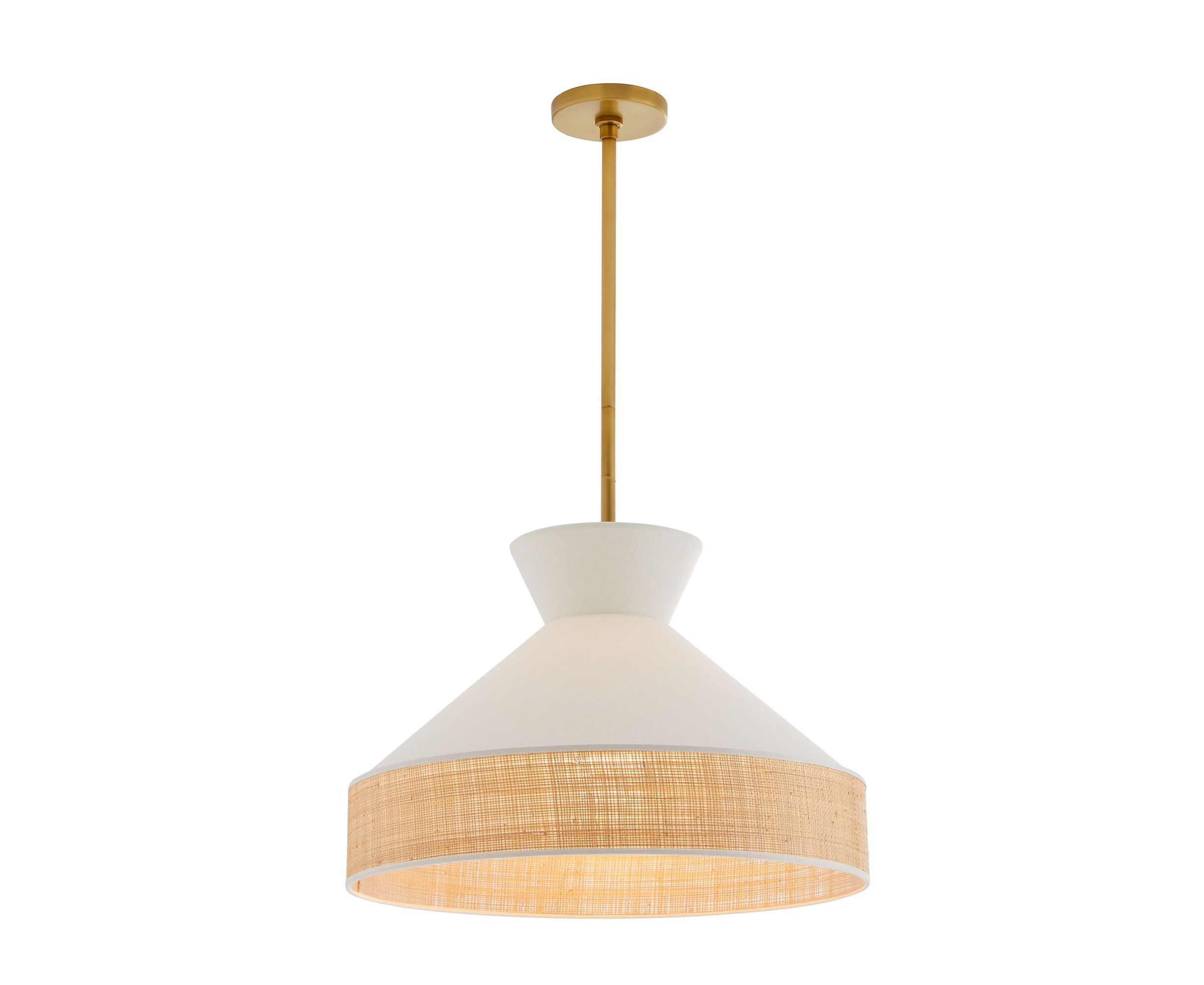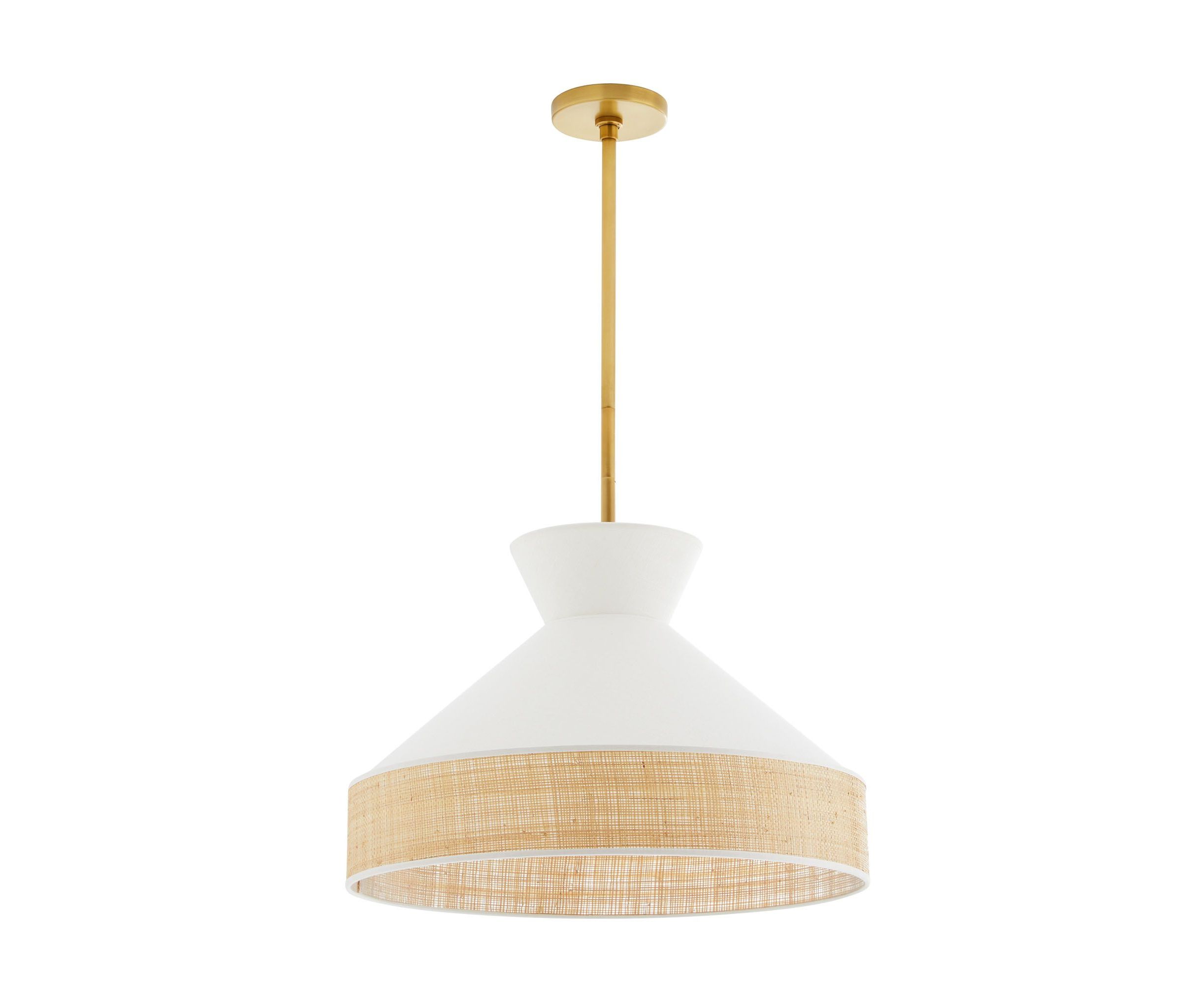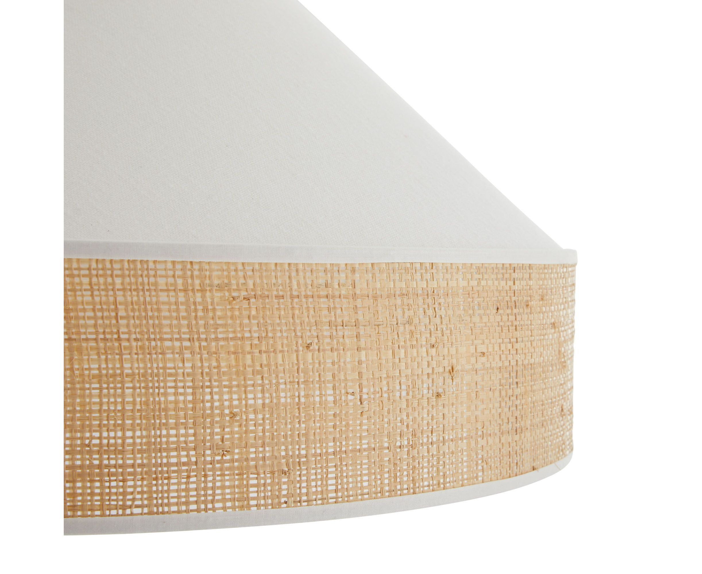 Модель Malena, представляющая собой дань современному дизайну баухауза, сочетает в себе органические материалы и форму середины века. Неглубокий, но угловатый силуэт абажура вмещает единственную шаровидную лампу и изготовлен из белого льна с отделкой из натурального ротанга, которая придает текстуру его чистой, воздушной эстетике. Отделка зависит от типа помещения.