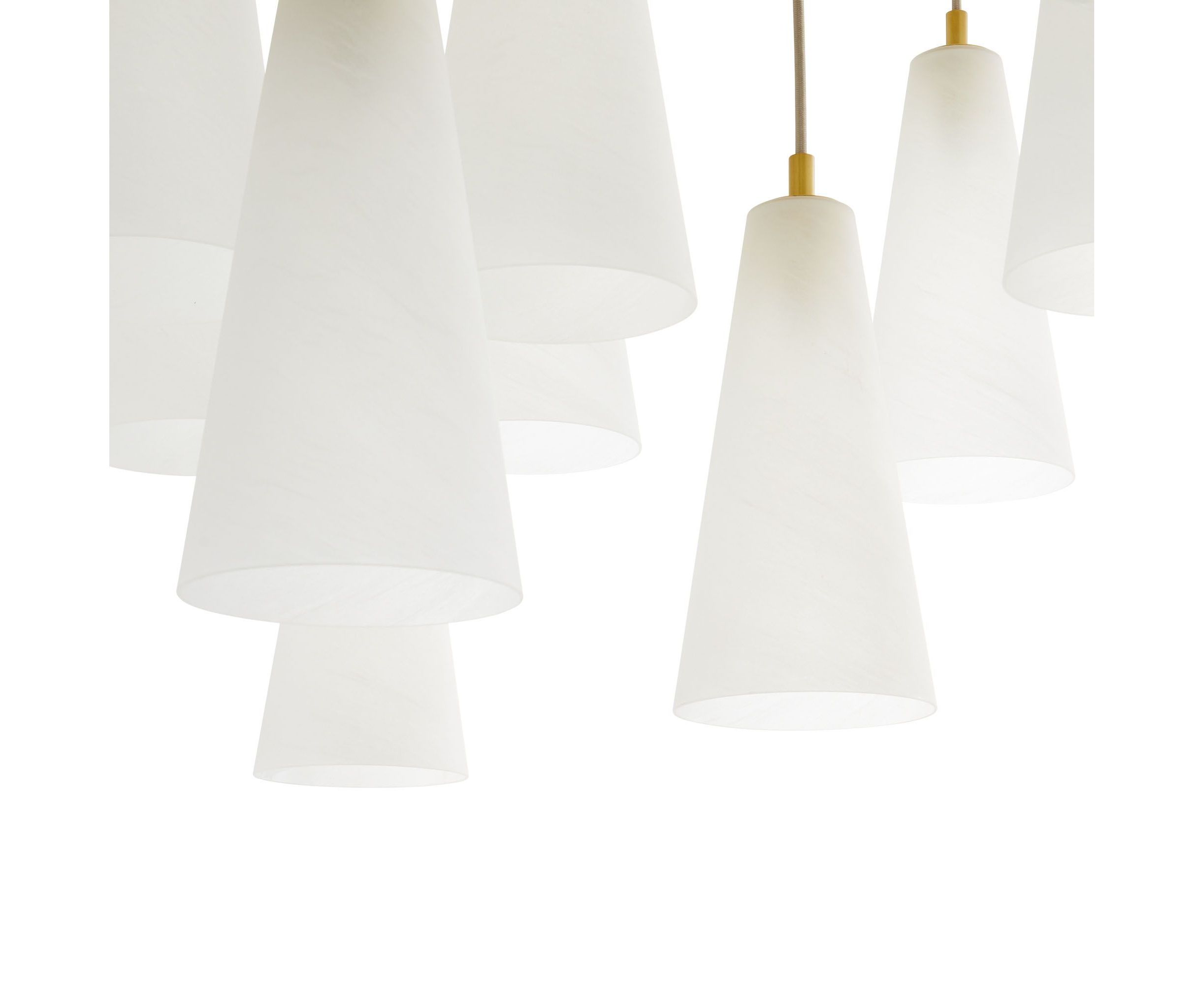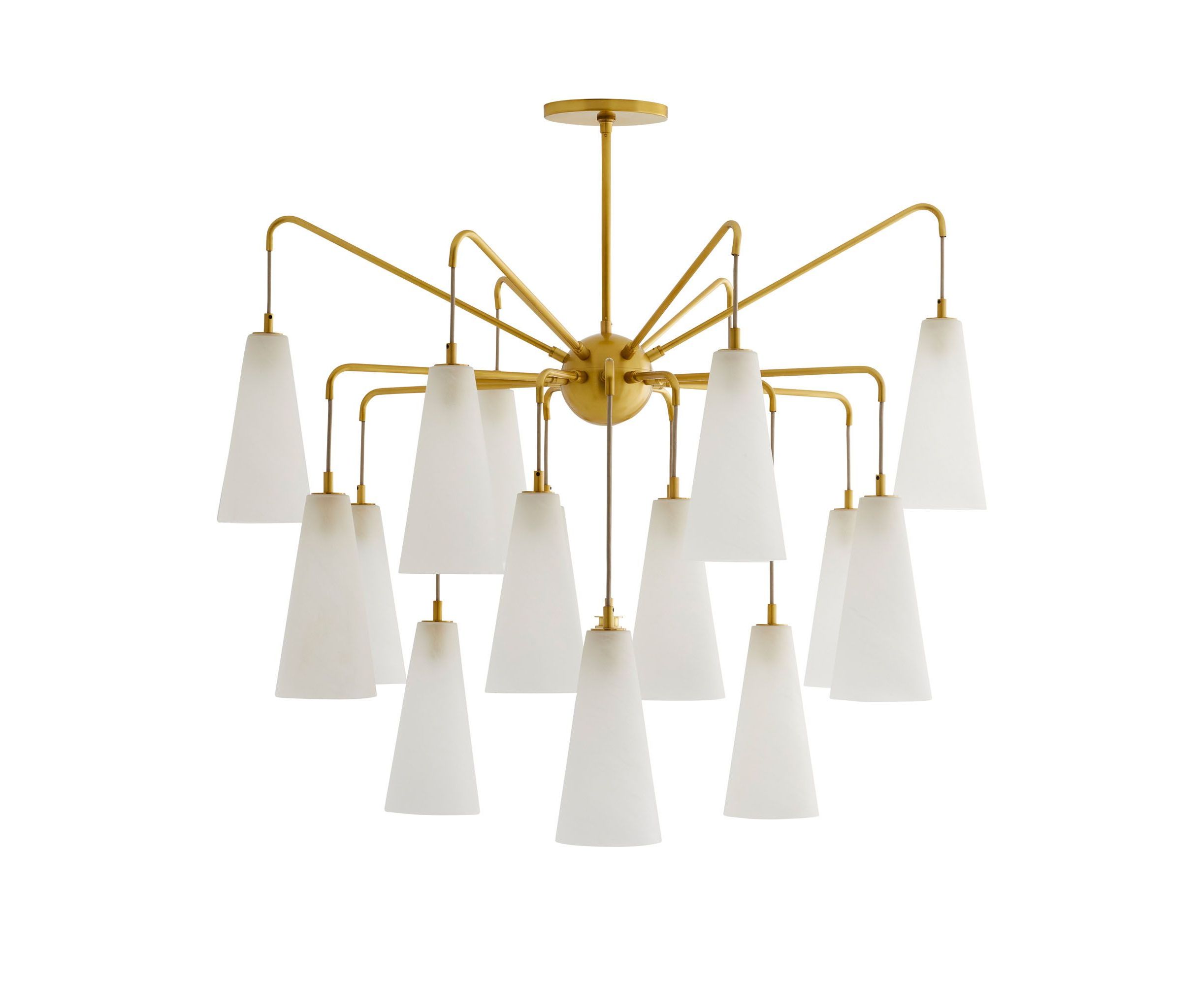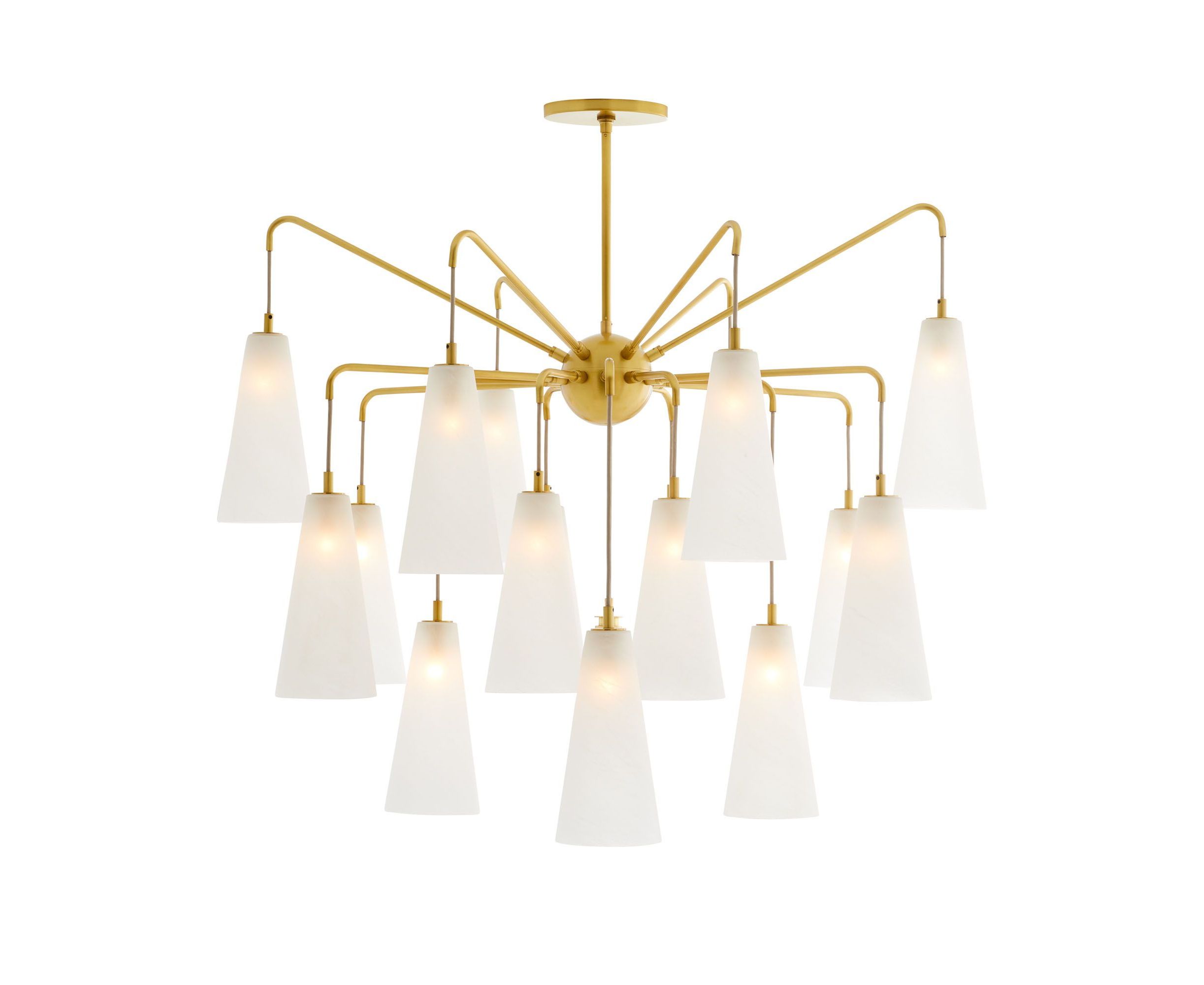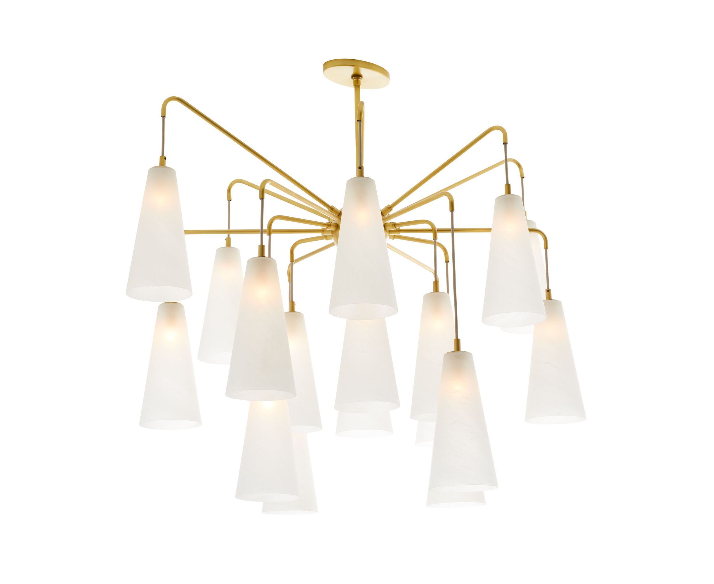 Модель Mika отличается смелым дизайном, сочетающим современные линии и изысканные материалы. Шахматный силуэт старинных латунных стальных подлокотников раскрывается, демонстрируя 18 опаловых стеклянных абажуров с матовой отделкой. Ступенчатая рама имеет впечатляющий масштаб и имеет оттенки с различными перепадами высот для создания впечатляющего светового пейзажа.