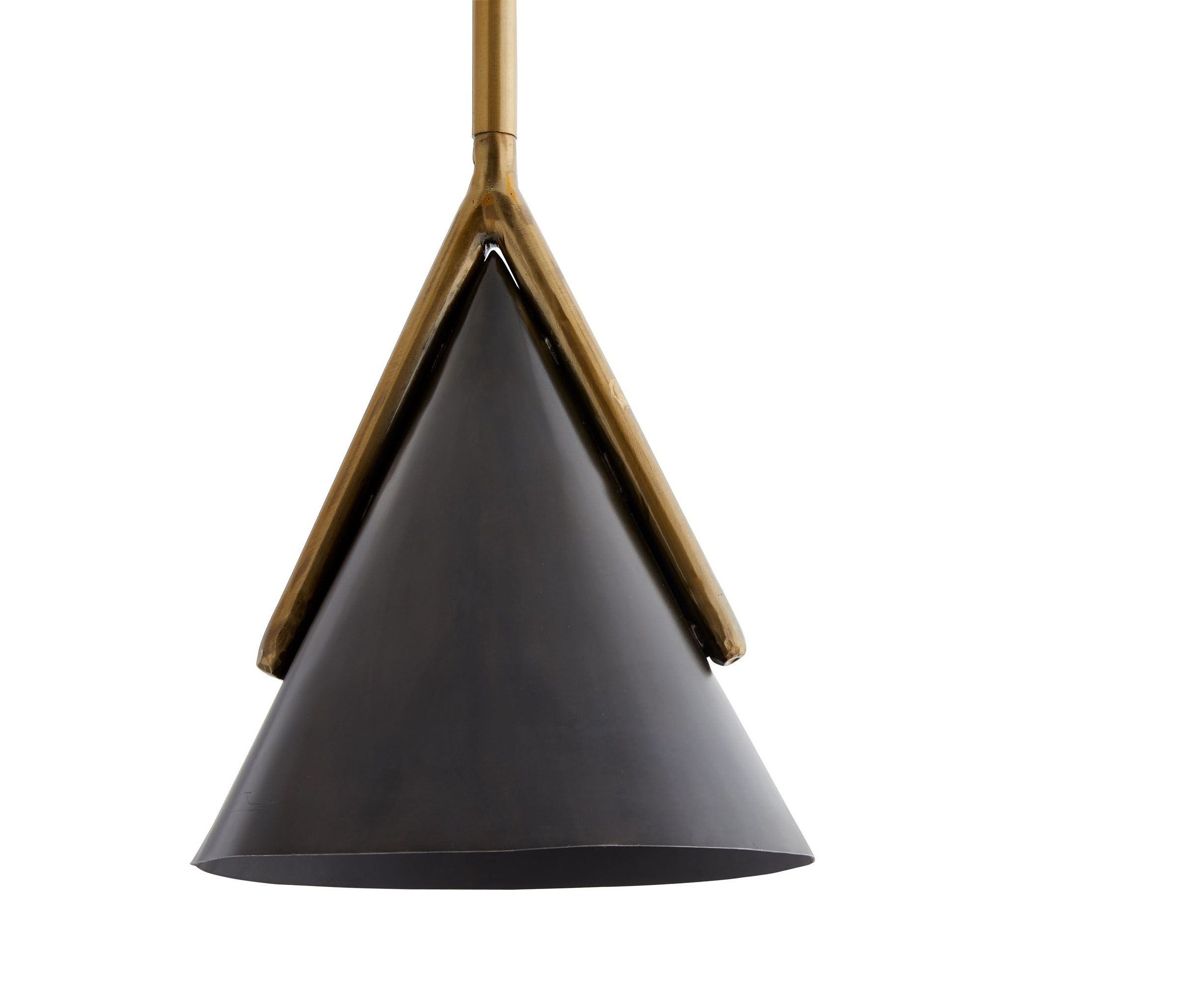 Этот классический подвесной светильник конической формы является основой современного промышленного освещения. Его многоуровневый силуэт выполнен из железа в бронзовой отделке и имеет старинный латунный железный стержень. Сопоставление отделок создает поразительный баланс между контрастными тонами.