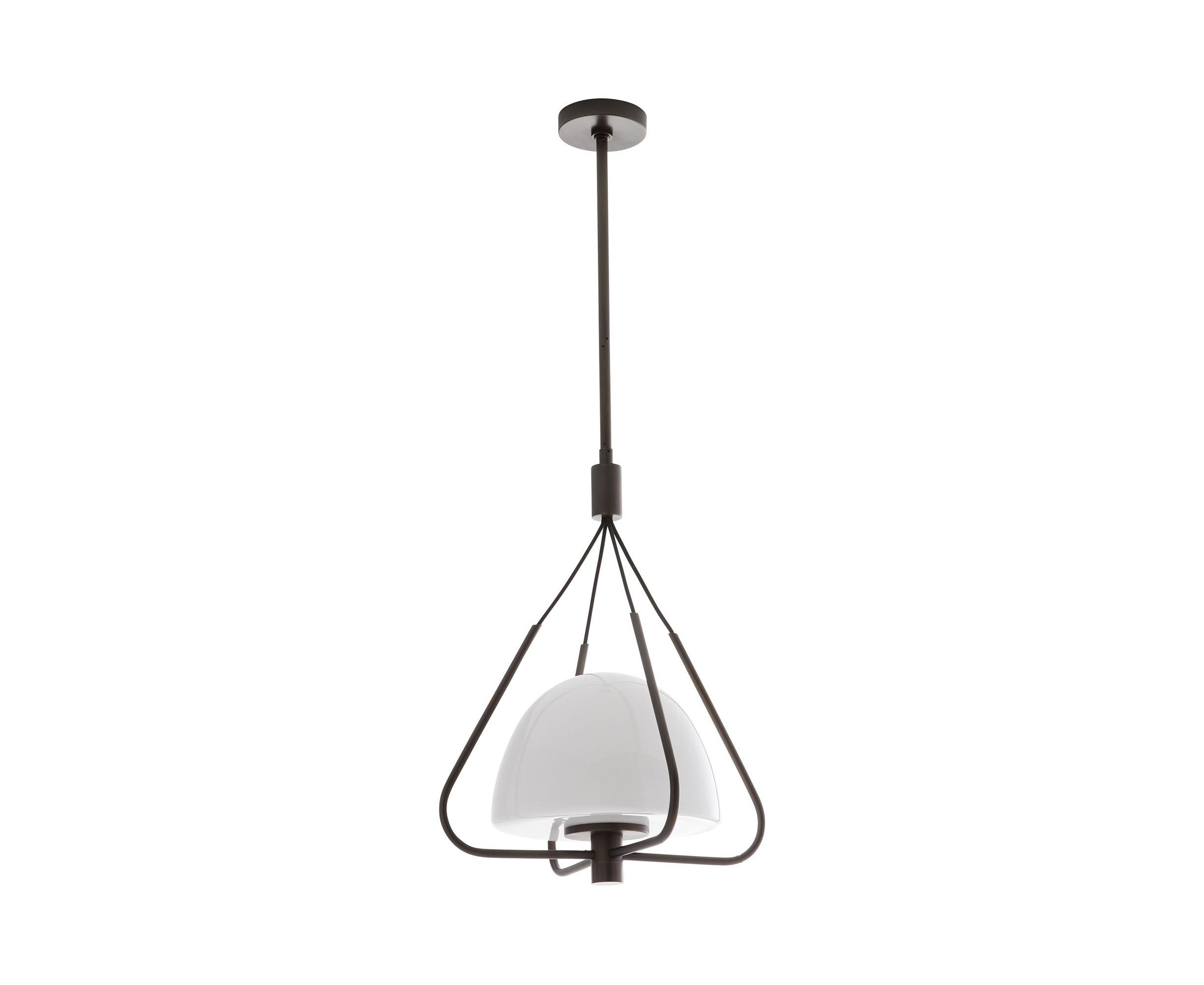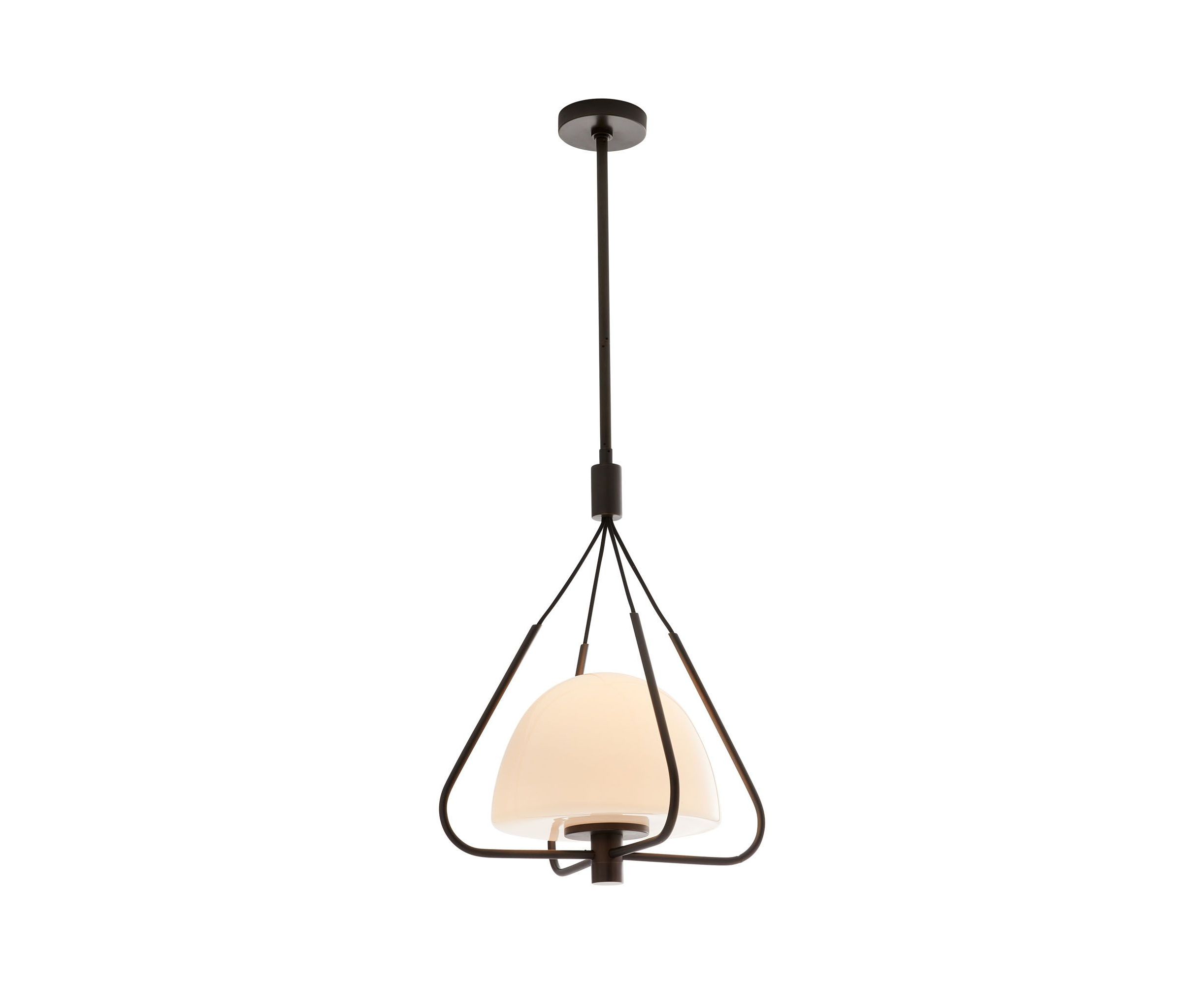 Уникальный вариант классического дизайна Оldham -английская бронзовая сталь обрамляет грибовидный опаловый стеклянный шар, который, кажется, плавает внутри рамы - особенно при освещении. В комплекте с черным матерчатым шнуром.
