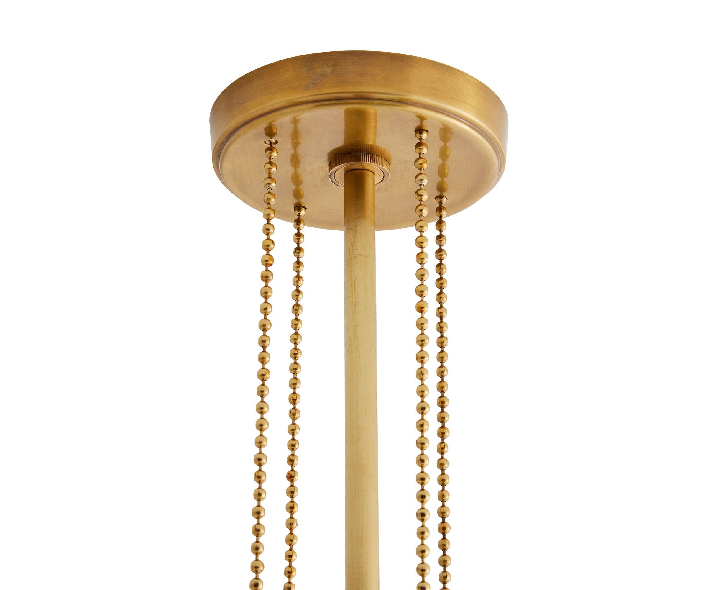 Подвесная лампа TAPIO SMALL, подвешенная на цепочках, создает красивое свечение благодаря перфорированному железу, отделанному старинной латунью. Разместите их над кухонным островке или повесьте пару над прикроватными тумбочками.