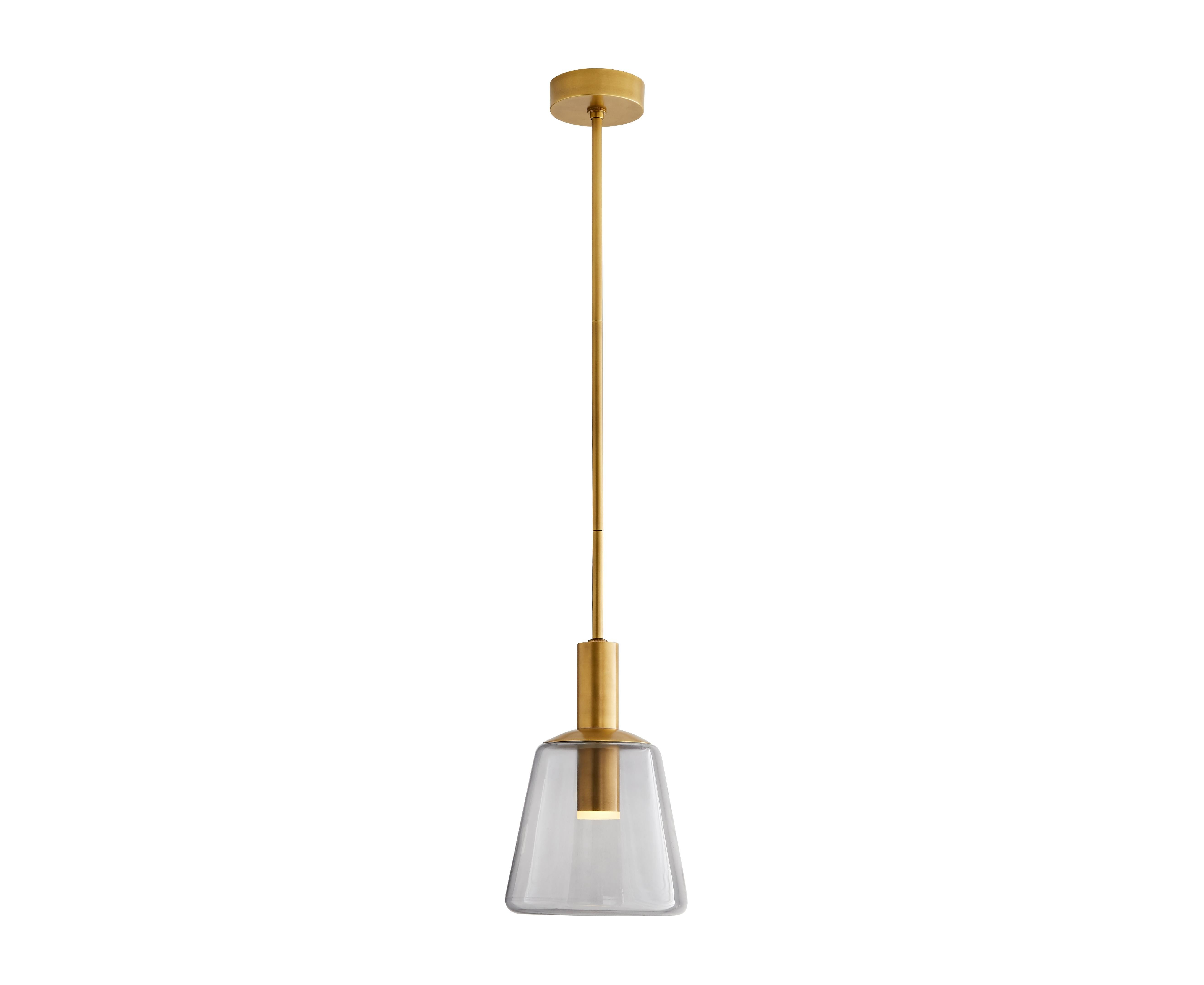 Современная элегантность упрощена с этим гладким и стильным кулоном. Стеклянный рассеиватель подвешен на стальном стержне с античной латунной отделкой, которая акцентирует и осветляет угрюмый оттенок дымчатого стекла. Светодиодный свет, окруженный стволом, распространяется по абажуру, чтобы направлять поток яркого света. Абажур съемный, что облегчает его очистку. Отличная демонстрация на кухонном острове или домашнем баре. Одобрено для использования на крытых уличных площадках.