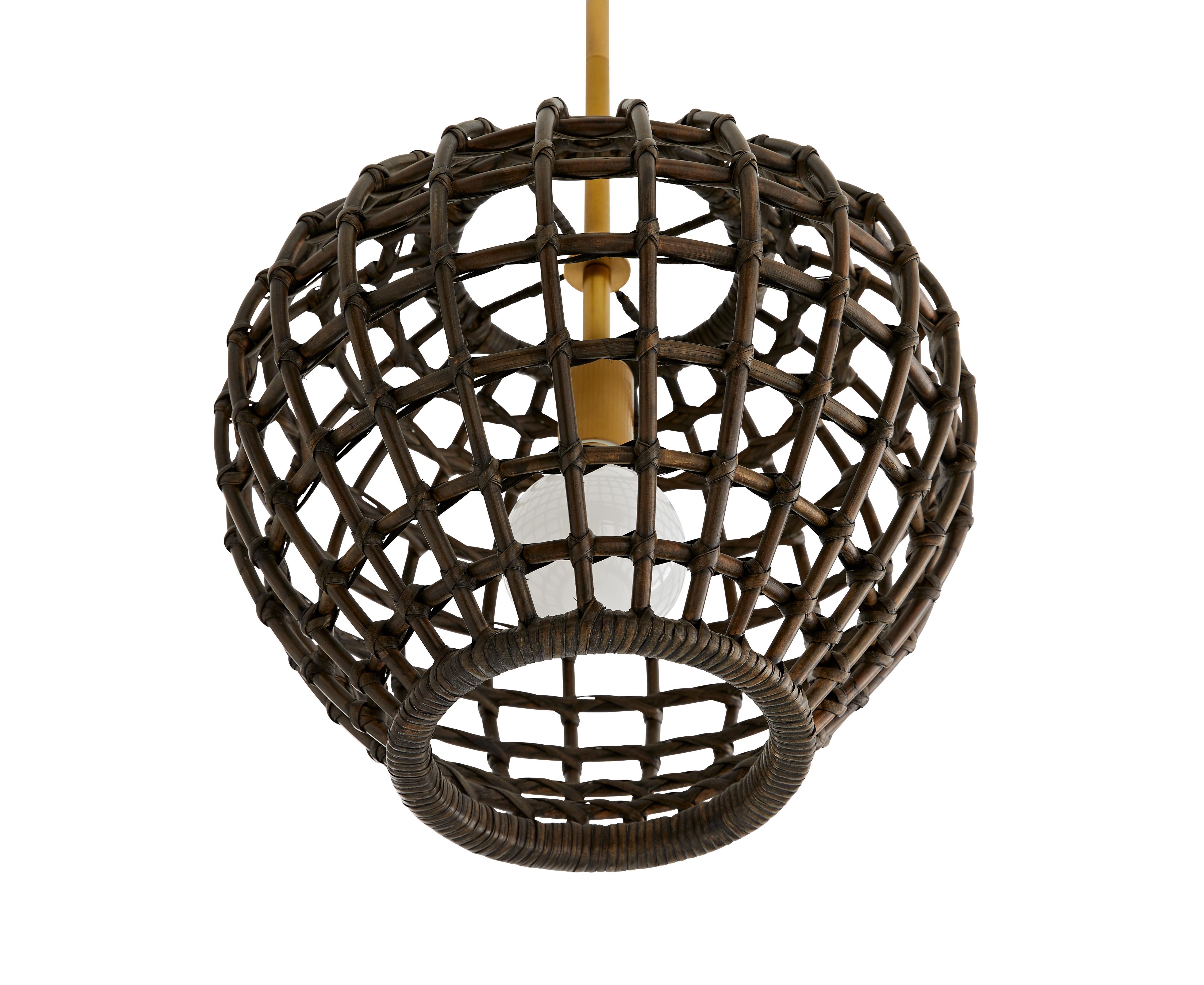 Веками ремесленники использовали ротанг для создания произведений искусства - этот кулон следовал их примеру. Образец клетки сделан, используя тонко нарезанные стебли ротанга, которые сформированы вручную, затем окрашены темно-коричневым цветом для декаденсного, но естественного прикосновения. Подвеска из стального стержня из античной латуни, открытая форма конструкции позволяет свету течь свободно и в изобилии. Отделка может отличаться. Одобрено для использования на крытых уличных площадках.