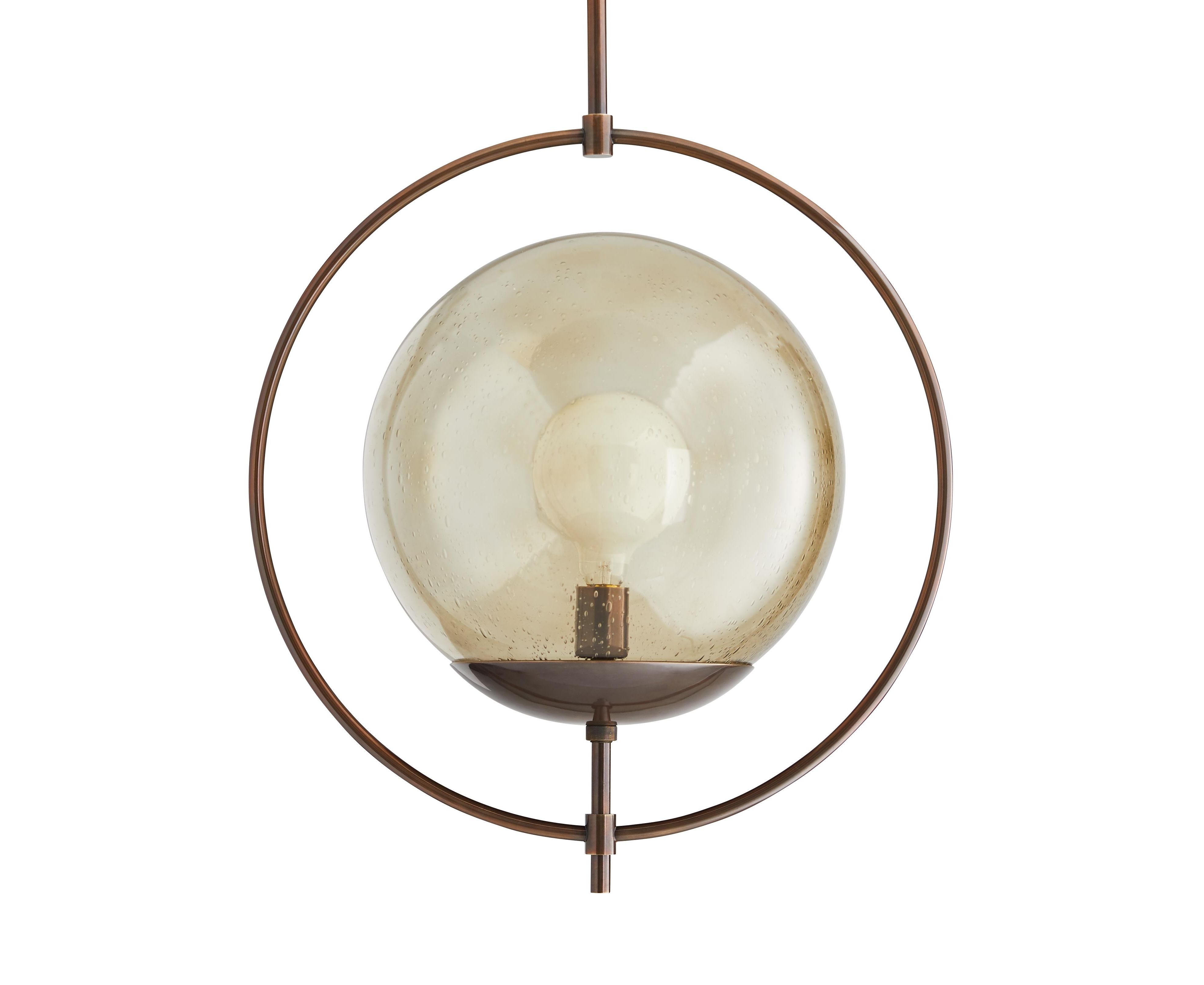 Глубины пространственного дизайна определяются с помощью подвески Volta. Дымчатый стеклянный шар подвешен на стержне из нержавеющей стали, отделанном старинной медью, которая охватывает его в свободной форме. Простой геометрический силуэт окружающего фасада создает визуальный образ плавающего шара, доставляя пространственную динамику. Одобрено для использования на крытых уличных площадках.