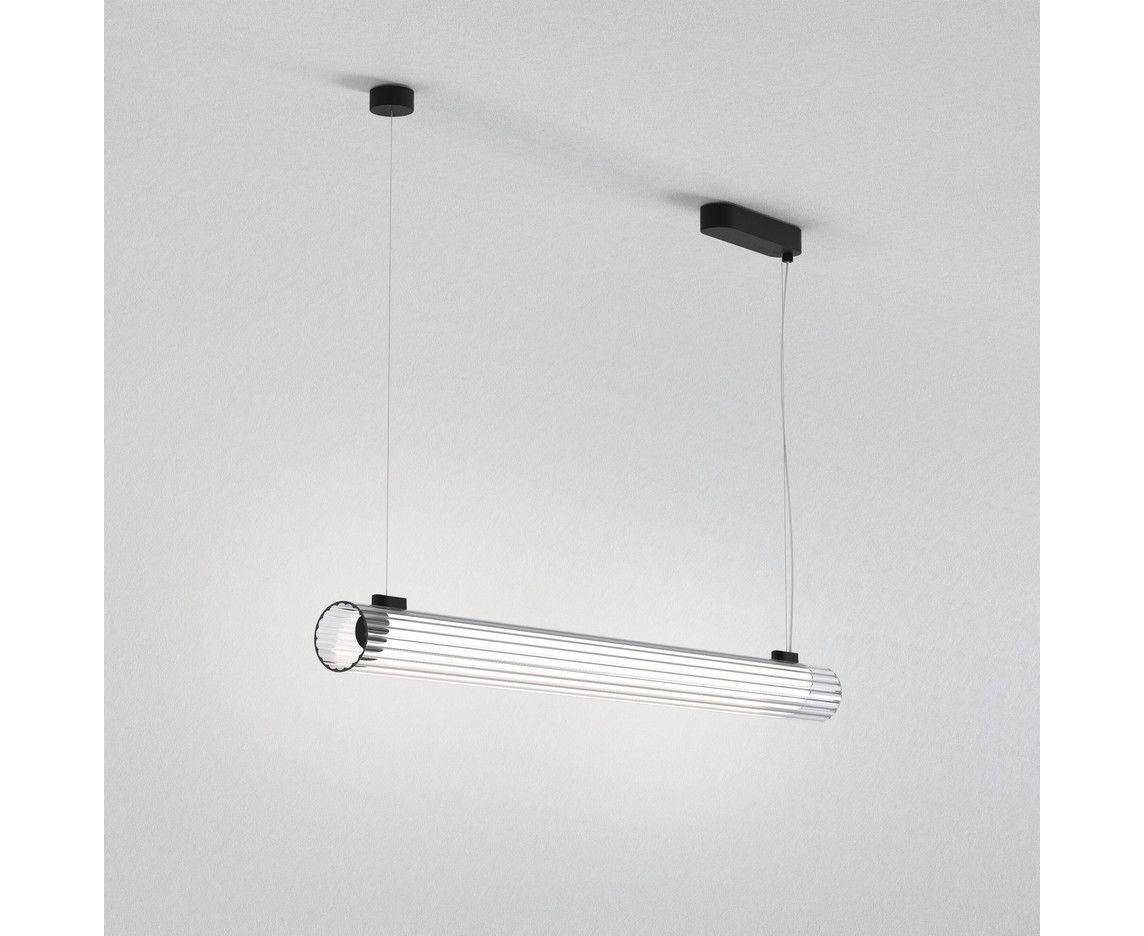 Подвесной светильник iO LED Linear Suspension Light от Astro Lighting демонстрирует творческий дух Astro: хороший дизайн требует простоты, предлагая продукты с техническим совершенством, выходящим далеко за рамки их эстетического дизайна. IO, входящий в состав Astro Capsule Collection Volume 01, привносит в свое окружение сочетание минималистской простоты и современной элегантности, независимо от стиля декора. Два небольших дисковых кожуха удерживают одиночные опорные кабели, дополнительно подчеркнутые большим центральным потолочным креплением для кабеля питания. Опорные кабели проходят вниз к закругленным деталям на каждом конце светильника, поддерживая как простой стержень светодиода, удерживаемый горизонтально внизу, так и рифленую стеклянную трубку, которая его окружает. В то время как открытые концы излучают более яркий свет, слегка прозрачное стекло смягчает лишнюю яркость, создавая привлекательную атмосферу.