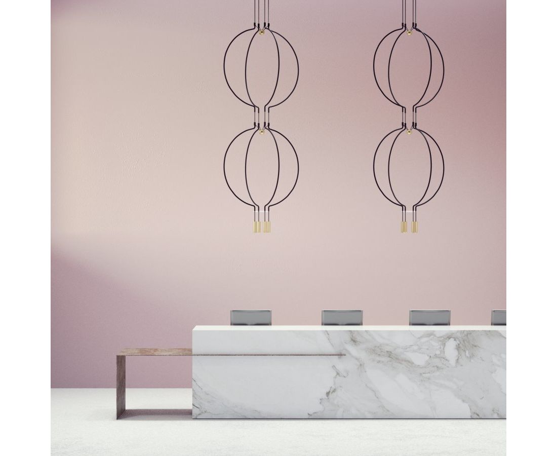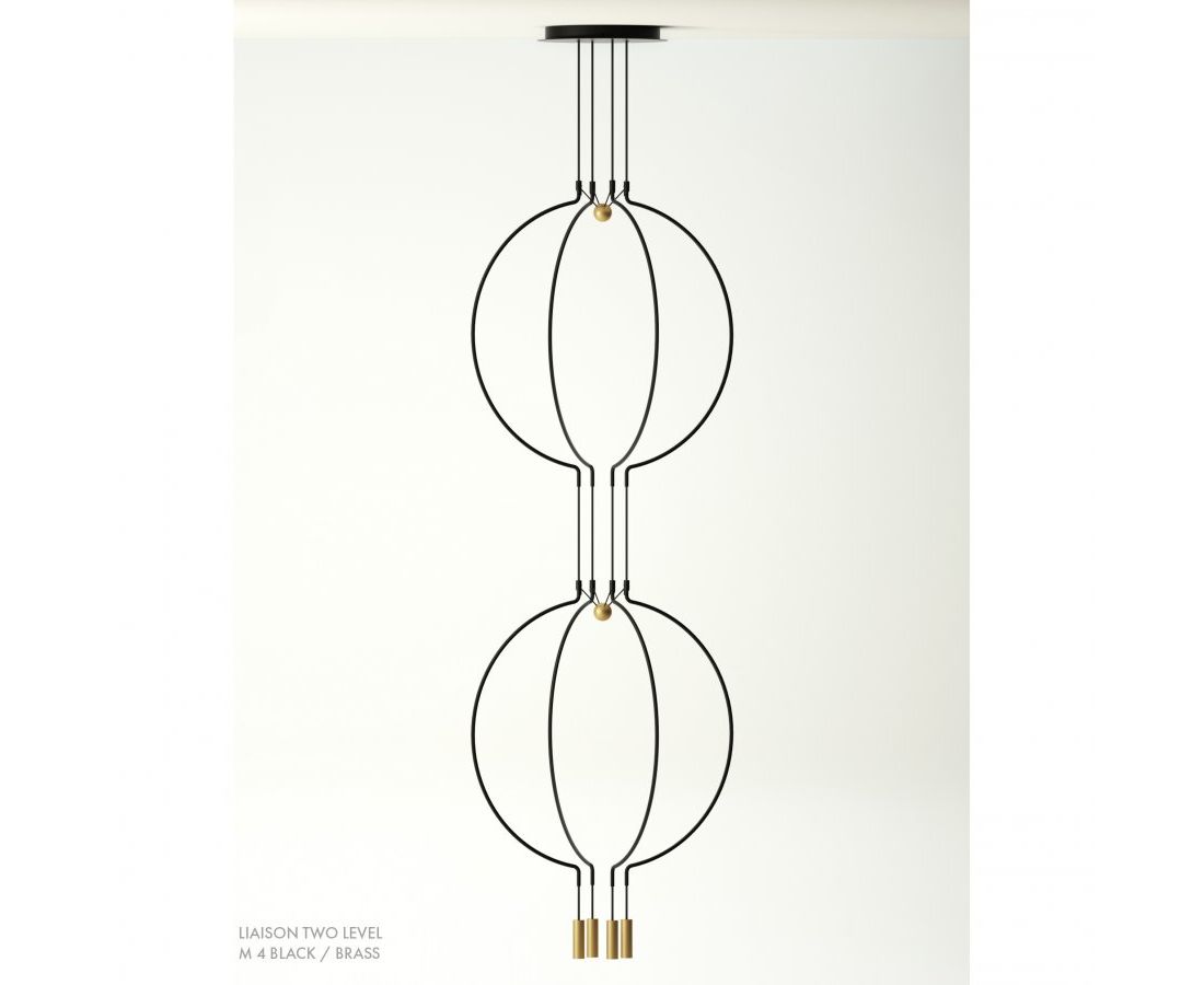 Liaison - это коллекция, основанная на особой шарнирной форме, которая поставляется в трех размерах (диаметром 45, 80 и 100 см). Он может устанавливаться индивидуально или в композициях из 2, 4 и 8 элементов, соединенных одной центральной сферой. Элементы нескольких версий могут по запросу дублироваться на двух уровнях высоты. Цвета, которые можно комбинировать, будут черными, латунными и песочными. У конечного пользователя будет возможность настроить форму, цвет и размер, создавая функциональные решения для различных концепций интерьера.