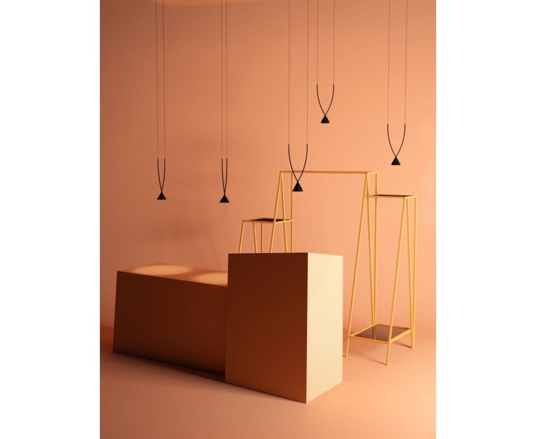 Jewel - это коллекция подвесных светильников, особенностью которых является двойная скрещенная арка, изготовленная из переработанного ABS, которая имеет алюминиевую коническую форму, содержащую светодиодный источник света. Доступны несколько вариантов отделки и четыре версии: один, три, четыре и десять ламп.