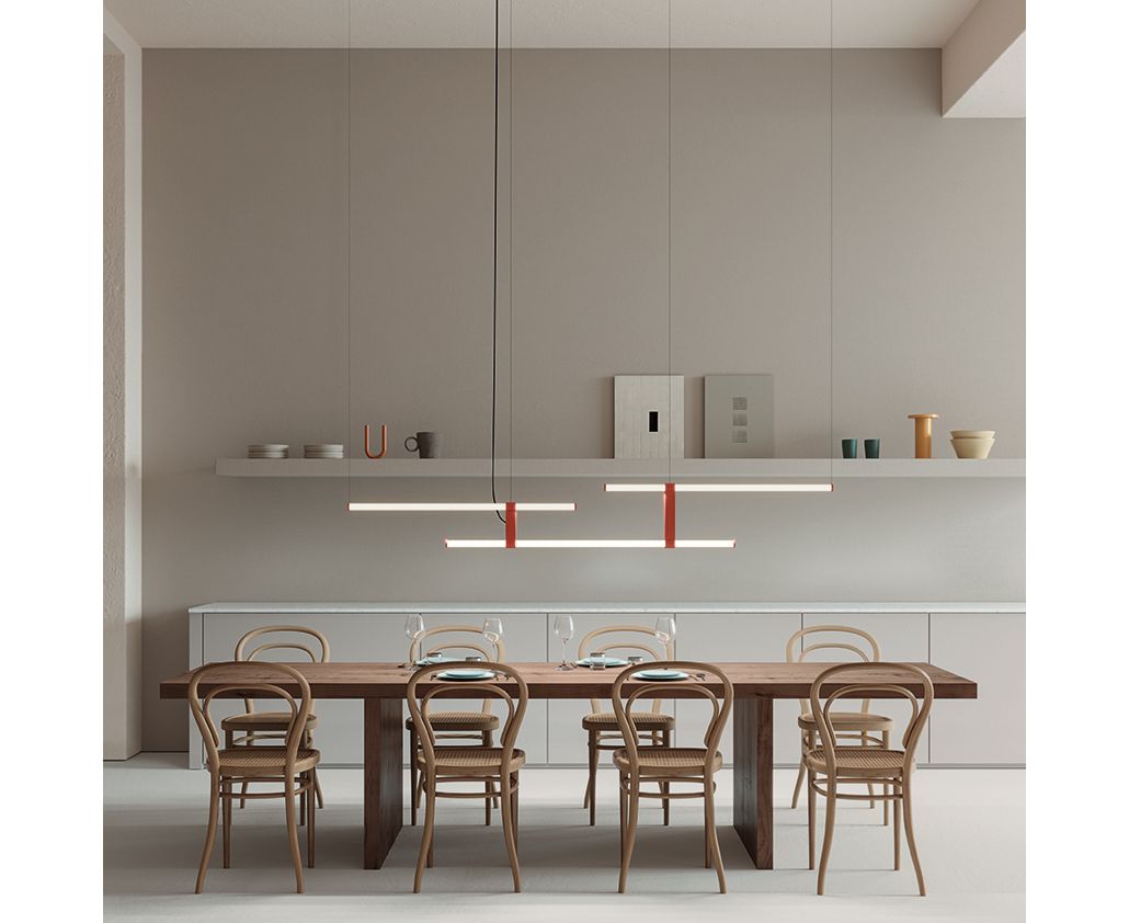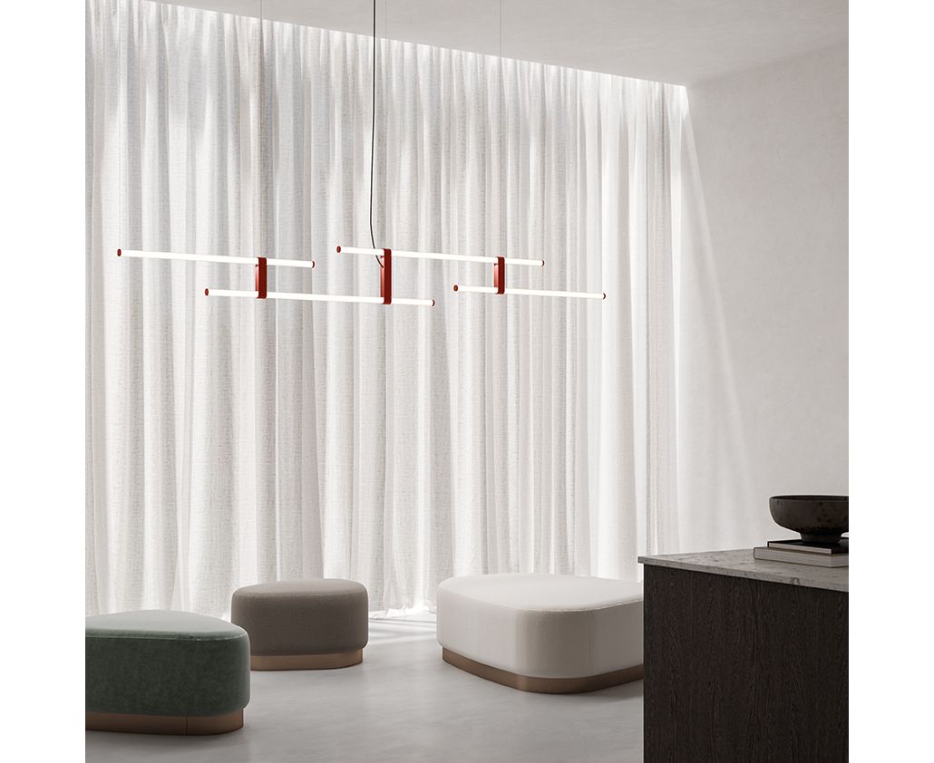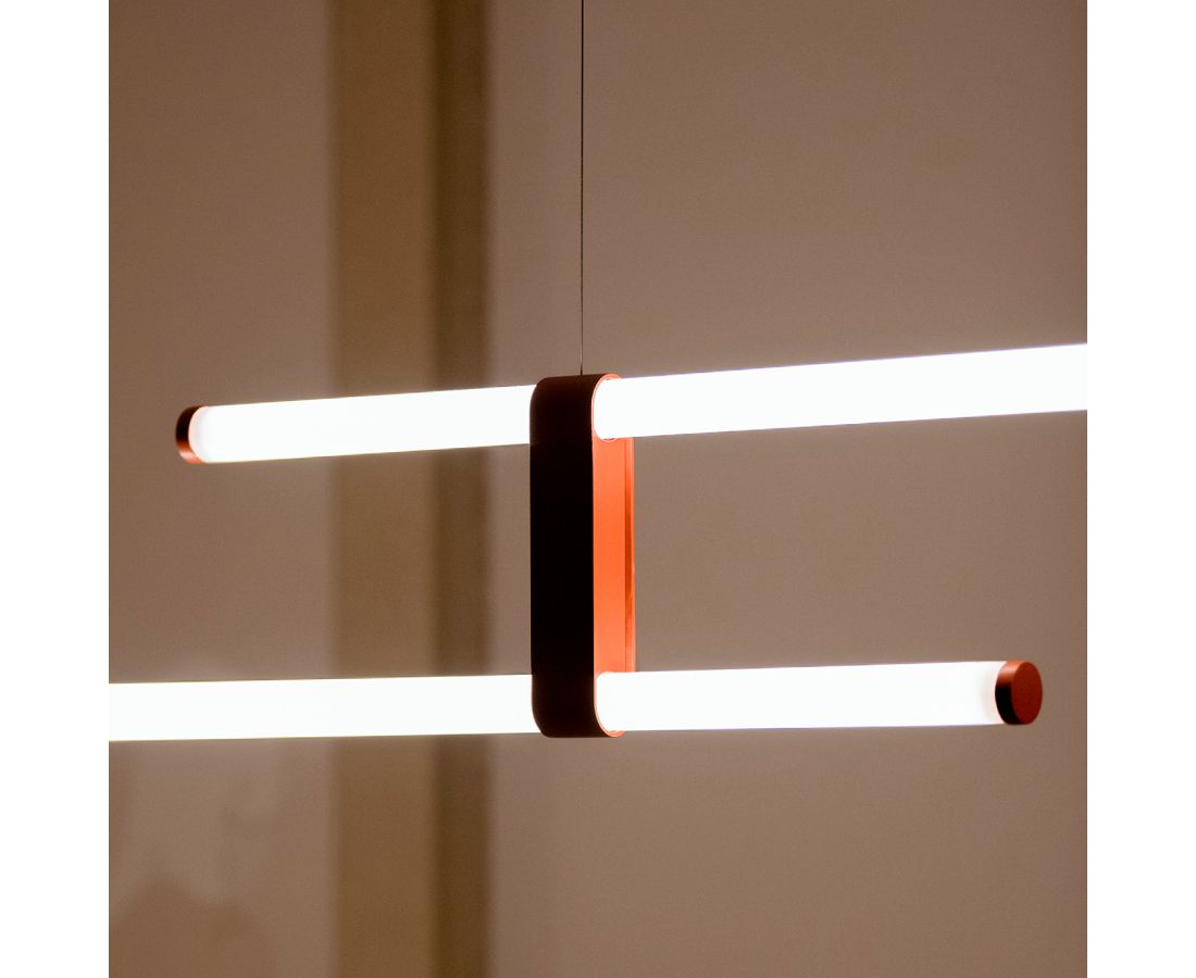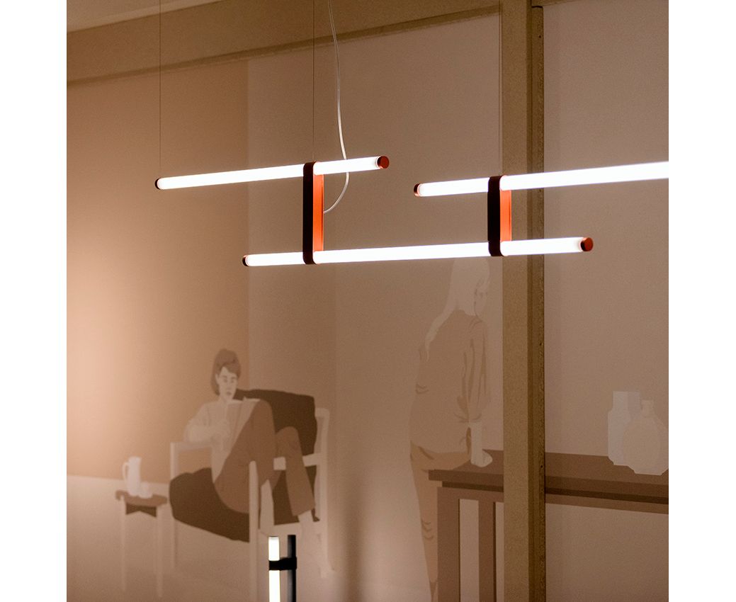 Paralela, модульная система, разработанная испанской студией Nahtrang, возникла из стремления придать форму свету, чтобы сам свет стал осязаемым декоративным светящимся элементом. Отсюда идея создания наполненных светом цилиндров из боросиликатного стекла, соединенных друг с другом металлическими соединителями, которые используют гравитацию, чтобы упорядоченно занимать пространство, вступая в визуальный диалог, который становится симфонией света. Это полное и новое семейство продуктов, доступное как в горизонтальной, так и в вертикальной подвесной версии, настольной лампе, торшере и бра, в разных размерах и пяти цветах.