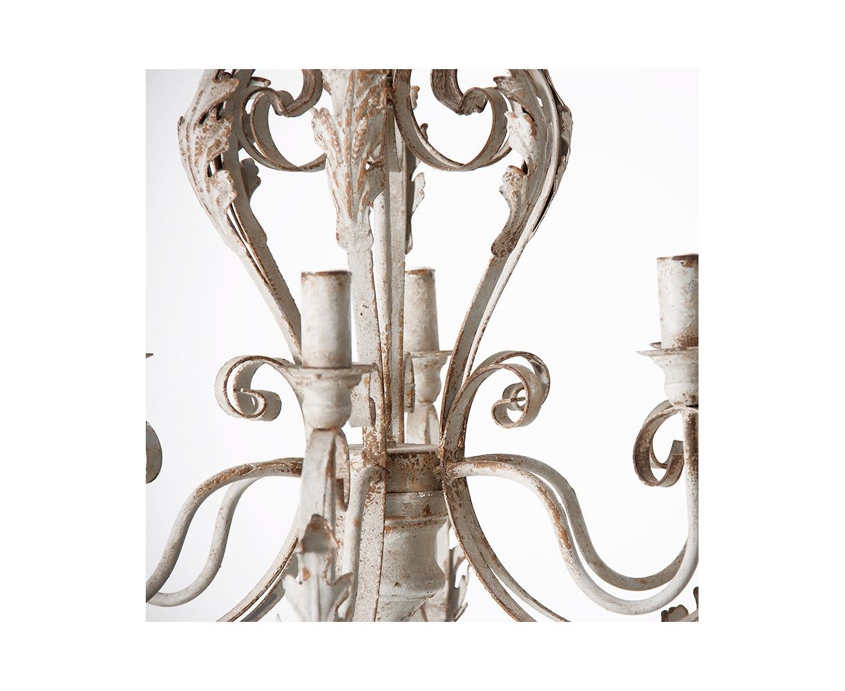 Подвесная лампа из белого железа. Если ваше любимое украшение датируется несколькими столетиями, то это идеальный светильник для вашей самой большой комнаты. Исходящие формы и сложные, и оригинальные. Светильник не останется незамеченным. Общая высота с цепью 141 см. Эта лампа эксклюзивна в нашем каталоге бренда.