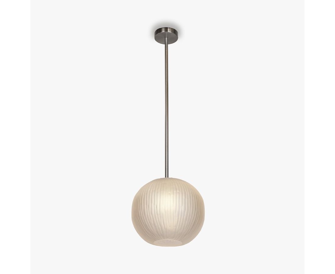Вдохновленный могучим кипарисом, этот подвесной светильник олицетворяет мужественный рост и спокойную красоту. Подобно своей древесной музе, глубоко укоренившейся в мангровых зарослях, светильник излучает ауру безмятежности. Его округлая форма отдает дань уважения царственной форме кипариса, в то время как вырезанные вручную борозды из стекла, деликатно пропитанные кислотой для получения матового эффекта, отражают сложную корневую систему дерева. Этот подвесной светильник является свидетельством мастерства природы, светильником, который излучает одновременно сдержанную элегантность и пленительное сияние, придавая очарование любому пространству, которое он освещает.