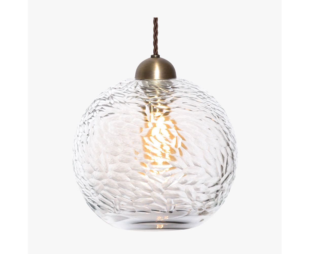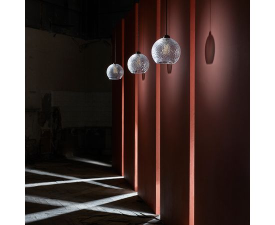 Тончайший английский свинцовый хрусталь высочайшего качества вырезан так, что имитирует узоры, выгравированные на стенах ледниковых пещер. Подвески и настольные лампы Glacier, изготовленные из муранского стекла «Баттуто», само название которого происходит от итальянского слова «битый», имеют индивидуальный облик всех экспертов по английскому кристаллу. Используйте их по отдельности или сгруппируйте несколько вместе для совершенно индивидуального вида.