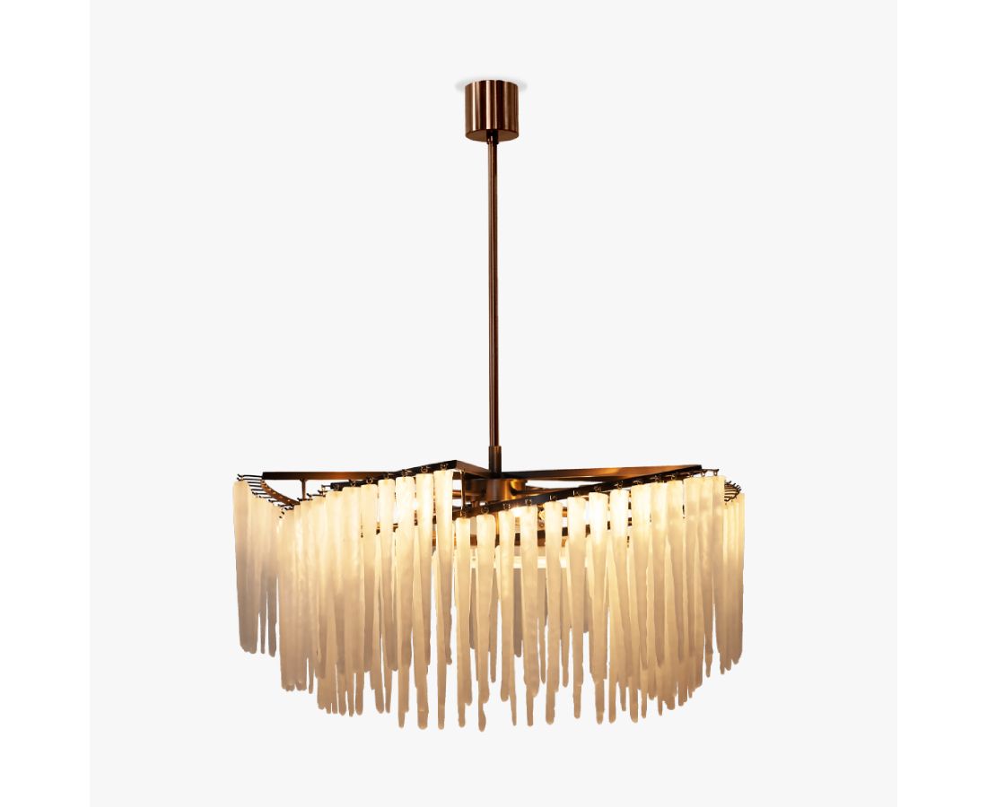 Ice Chandelier - это переосмысление одной из наших классик, люстры-сосульки, которая возвращается, в буквальном смысле, с изюминкой. Сами стеклянные подвески были полностью переделаны, и теперь эти капли, похожие на сталактиты, подвешены закрученными слоями, которые создают ощущение неподвижности и спокойствия. Эта люстра заняла свое место в нашей коллекции Vega, поскольку ее вращающаяся форма напоминает нам об огромных вращающихся галактиках.