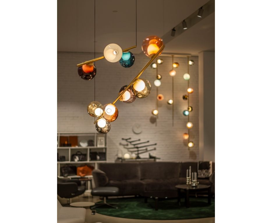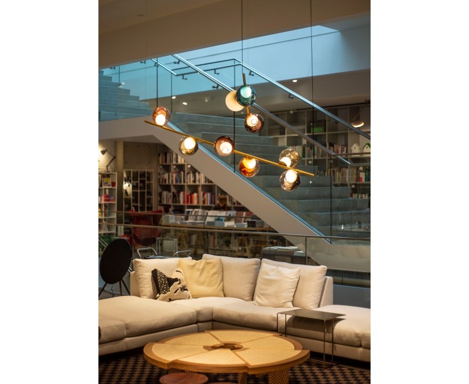 Коллекция 28 stem system позволяет осуществлять монтаж на полу, потолке или колонне. Возможна установка колонны в виде растяжки от пола до потолка. Напольная версия может быть подключена к розетке для максимальной гибкости. Все версии включают встроенную систему затемнения. Доступный в черном или медном цвете с различными вариантами подвески. Различные подвески Bocci могут быть использованы с системой.
