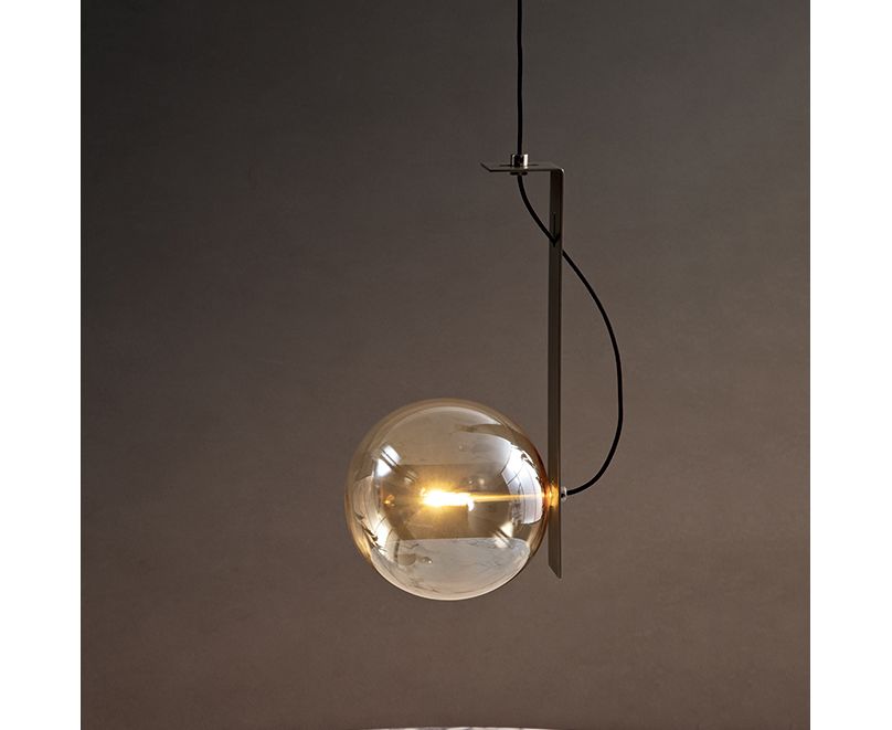 Подвесной светильник Bon Ton, разработанный Studio Team Design, развивается вокруг своей центральной оси, состоящей из трех металлических пластин из полированной стали или с элегантной медно-бронзовой отделкой. Это объект, в котором стеклянные шары, образующие абажуры, доступны из прозрачного, янтарного или дымчатого стекла, расположены в неправильном порядке, подчеркивая их динамичный характер. Bon Ton доступен в версии с одним глобусом или в версиях с тремя или шестью глобусами, которые придают дополнительное движение фигуре лампы.