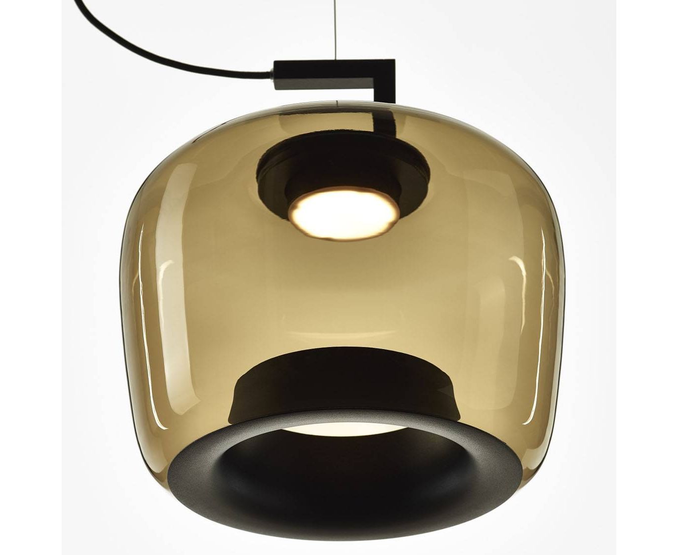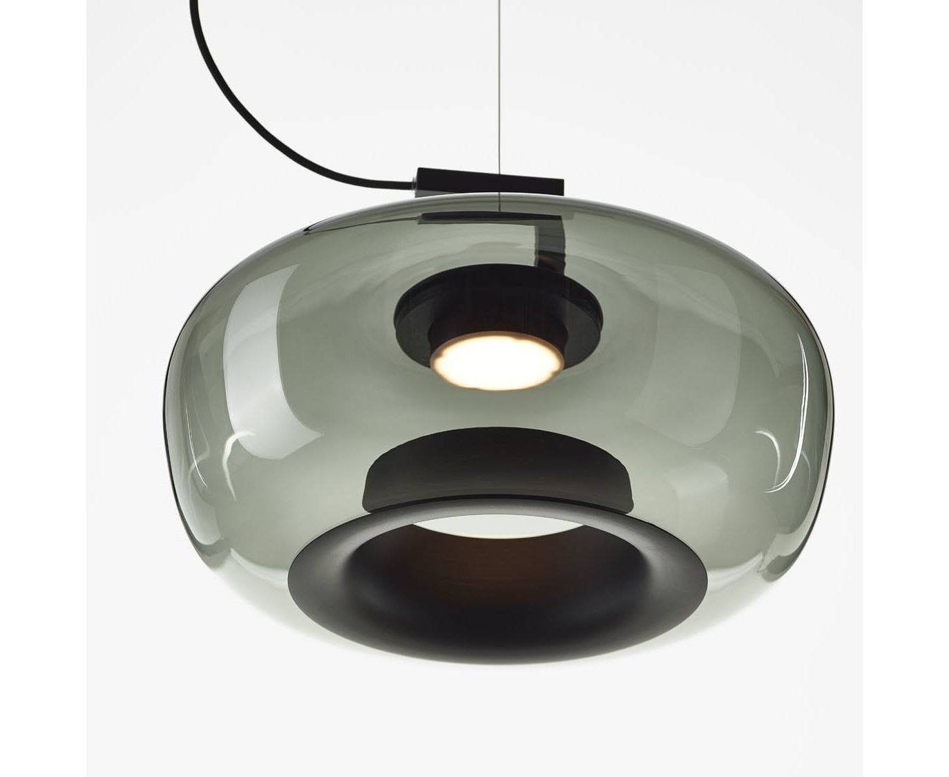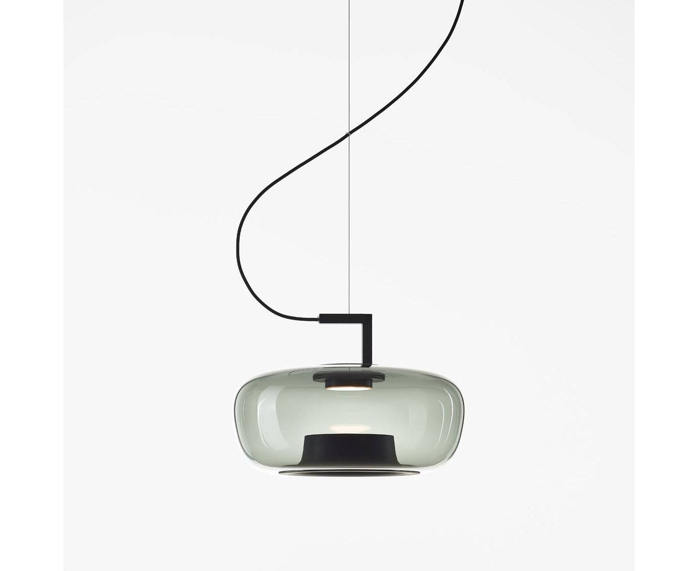 Double, новая коллекция подвесных светильников, основана на форме, состоящей из двух элементов, изготовленных из двух разных материалов – стекла и легкого алюминия. Эти элементы зависят друг от друга, создавая уникальную и созвучную форму. Стеклянный шар, заканчивающийся металлическим кольцом, создает наводящий на размышления эффект, а ручка сверху намекает на идею транспортировки света. В подвесном варианте, который доступен в трех различных формах, верхняя металлическая секция с проволочным тросом стремится к равновесию в рассеянном свете и тенях, когда они проходят через нижнее металлическое кольцо и шар, последний изготовлен из нескольких слоев расплавленного стекла, которые тщательно изучаются мастером-стеклодувом перед выдуванием. Яркость светодиодного источника света смягчается опаловым рассеивателем. Благодаря своему объему коллекция Double идеально подходит для частных интерьеров и очень хорошо сочетается с большими композициями и цветовыми сочетаниями.