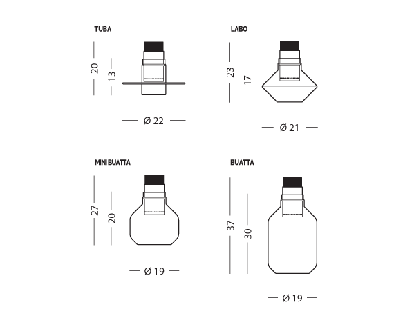 С коллекцией AUF я попытался сосуществовать с этими двумя душами, с одной стороны, рациональность металлического цилиндра, содержащего источник света, который повторяется в каждом изделии, с другой стороны - стеклянный элемент, который варьируется в 4 разных формах, разных цветах и отделке. Затем я убедился, что металл и стекло соединены через простое резиновое уплотнительное кольцо, которое делает сборку и разборку лампы очень простой и избегает прямого контакта между этими двумя материалами".