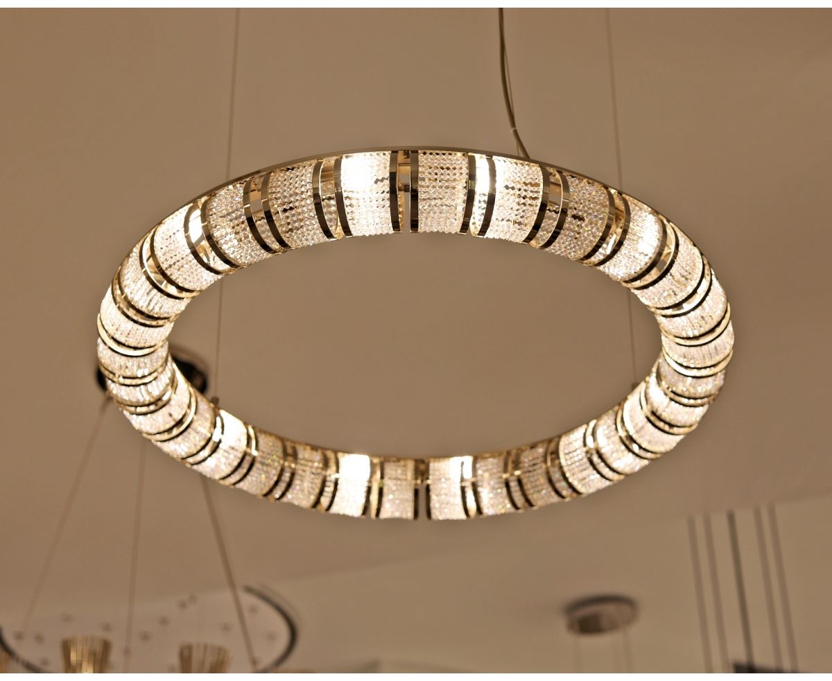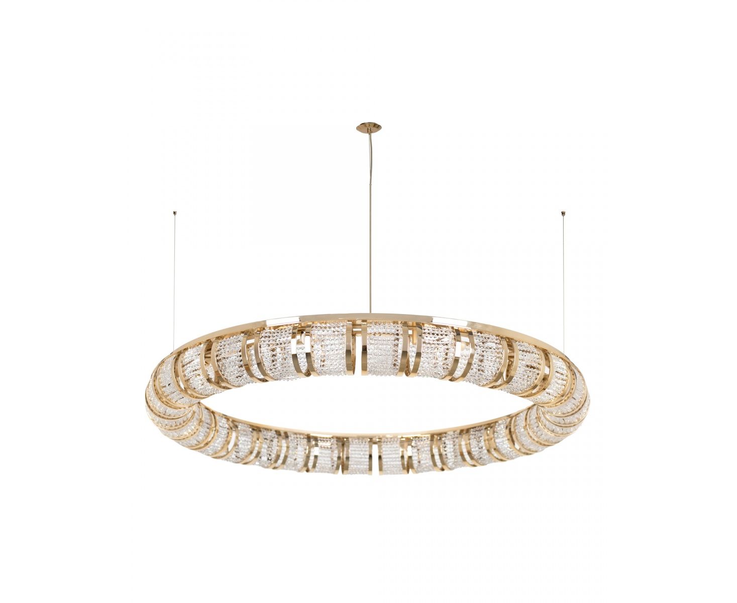 Прозрачная, но деликатная подвеска Leviev представляет собой современное сочетание изысканной простоты с щепоткой роскошных деталей. Скромность как новое утверждение роскоши придает особый шарм и образ мышления самым изысканным интерьерам. Изогнутая округлая форма в сочетании с кристаллами Swarovski раскрывают баланс изысканности, придавая интерьеру характерный акцент комфорта и гармонии. Его позолоченная латунная структура оживает благодаря украшению светящимися хрустальными бусинами Сваровски.