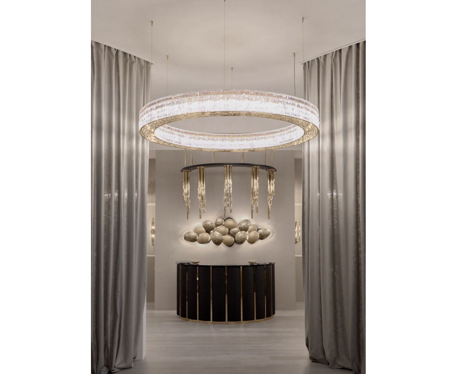 Spacium, латинское слово, означающее «пространство», является одним из самых элегантных дизайнов, поскольку отражает мощь и величие, которые он предлагает. Эта подвеска ручной работы воплощает идею великолепия и неповторимой красоты, создавая неповторимый образ. Этот предмет, состоящий только из кристаллов, отражает свет очень специфическим и необычным образом, придавая динамичный вид любому интерьеру.