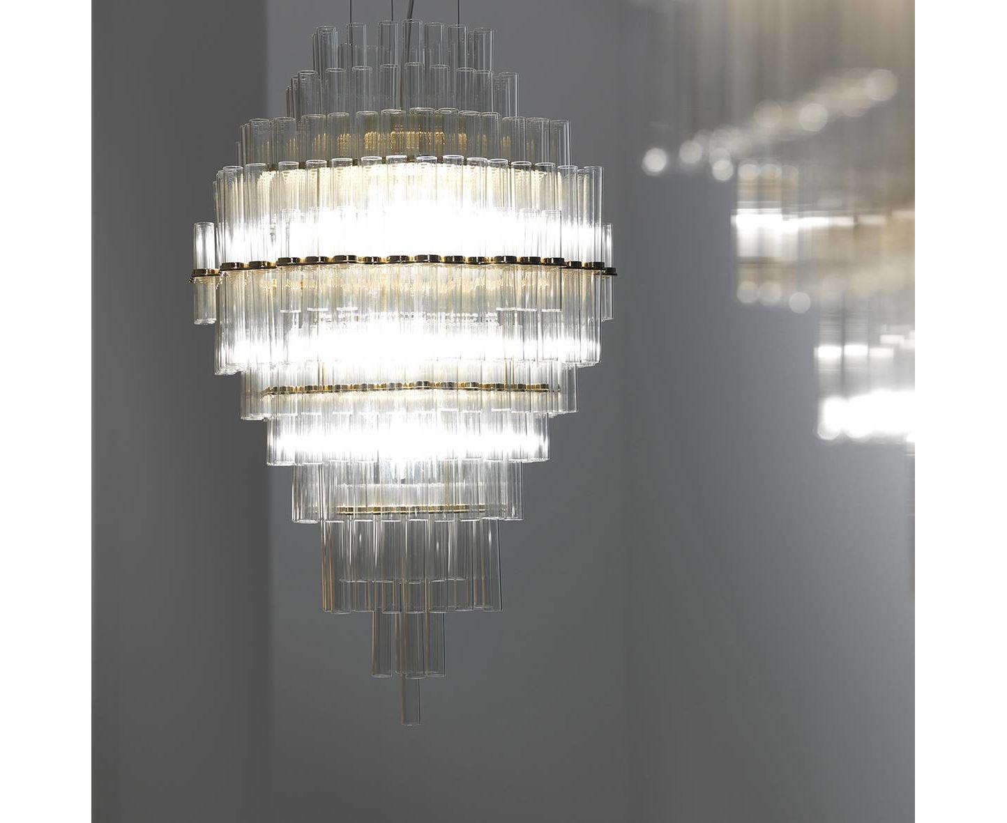 Подвесной светильник Blass с основой из полированной латуни и стекла Pyrex.