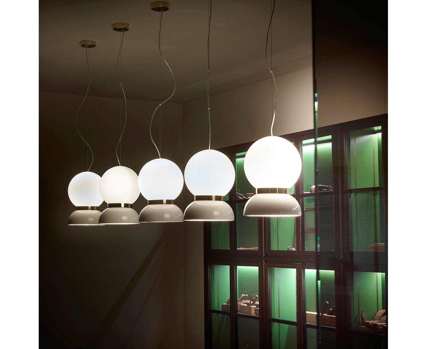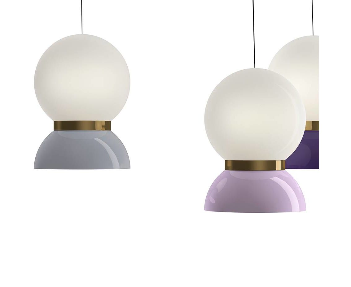 Подвесной светильник Saint Louis с корпусом из латуни, плафоном из белого стекла и абажуром из керамики, доступным в различных цветах.