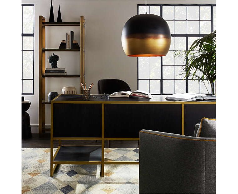Индустриальный подвесной светильник-купол ручной работы с искусными краями постепенно переходит от дымчатой бронзы к золотистой латуни. Этот красивый светильник, подвешенный над обеденным столом или в гостиной, подчеркивает очарование комнаты, в которой сочетаются металл и ремесленные изделия.