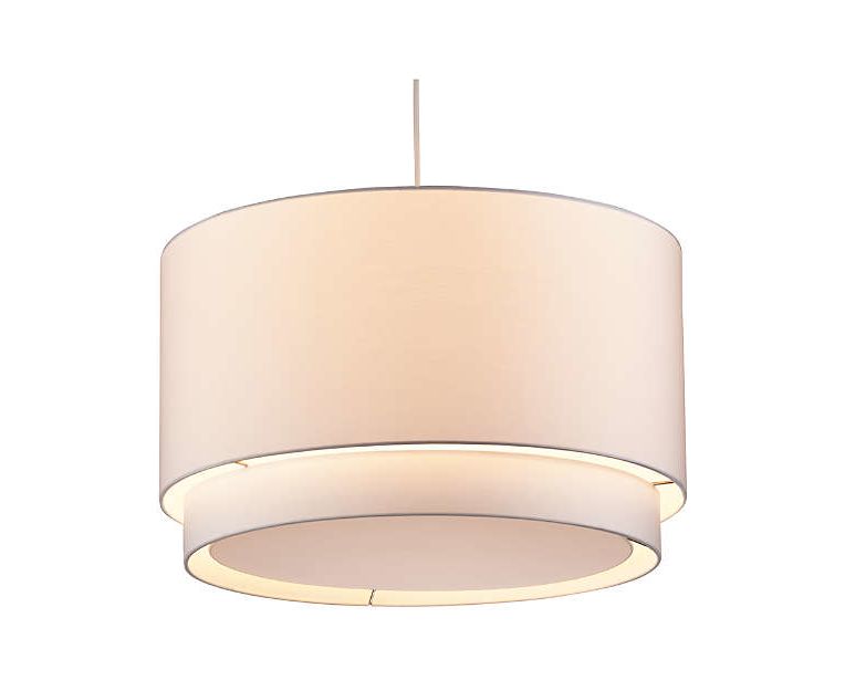 Этот подвесной светильник с одной лампочкой и двумя барабанами излучает мягкое сияние. Двухуровневый абажур из смеси белого хлопка интригующе фильтрует свет, создавая слои сияния. Рассеиватель под лампочкой завершает образ и создает приятный свет. Основание и потолочная пластина из матового никеля украшают оба конца длинного белого шнура.