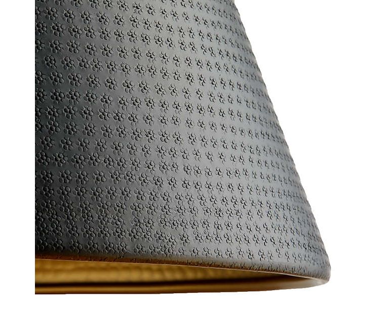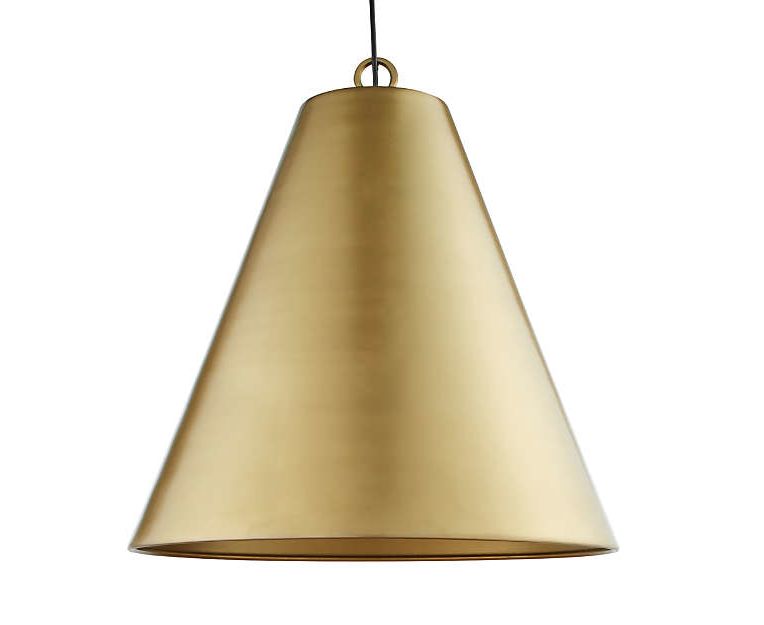 Подвеска с конусом из темной бронзы или латуни привносит смелость и теплую красоту в любое пространство, а его яркая латунная внутренняя часть отражает свет с прекрасным сиянием. Повесьте один в уголке для завтрака, два в спальне над прикроватными тумбочками или три над кухонным островком. Этот классический конус, неподвластный времени и миру, свисает с железной потолочной пластины, отделанной темной бронзой, которая гармонирует с тонко текстурированным алюминиевым конусом. Эксклюзивный подвесной светильник из кованого металла украшен миниатюрной петлей.