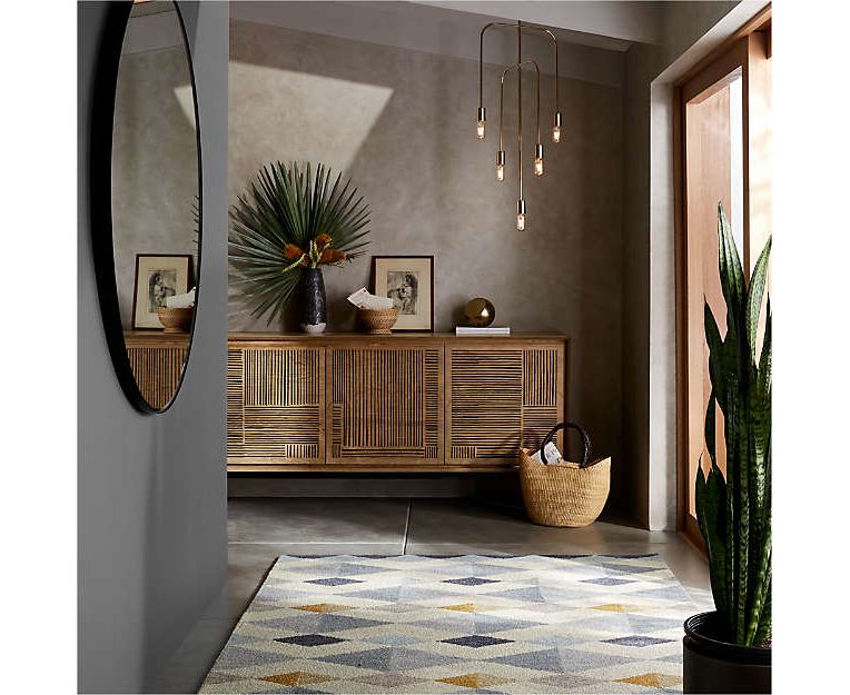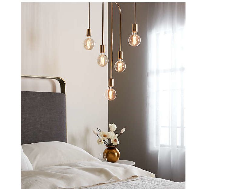 Светильник с отделкой из латуни создает минималистичную люстру с чистыми линиями и изящными изгибами. Пять розеток для ваших любимых лампочек, достойных демонстрации, вертикальные стержни, выходящие из арки потолка, органически напоминающие растения. Линейный подвесной светильник обеспечивает много света и эффектно смотрится в вестибюлях, столовых или на лестничных пролетах. Подвесной светильник Salerno, разработанный Кэти Акафф, является эксклюзивом для Crate and Barrel.