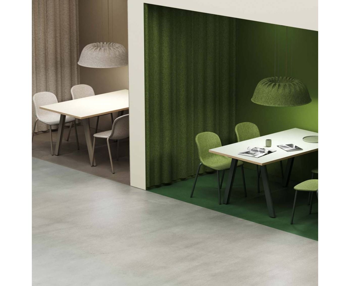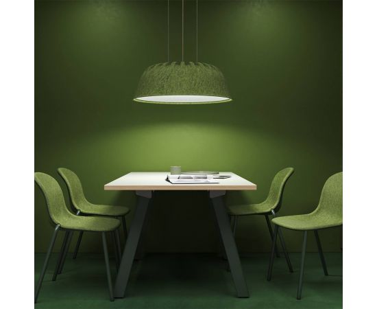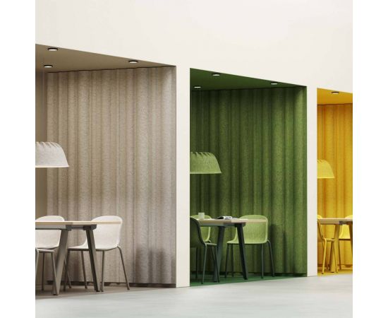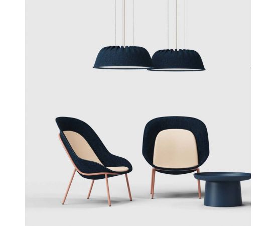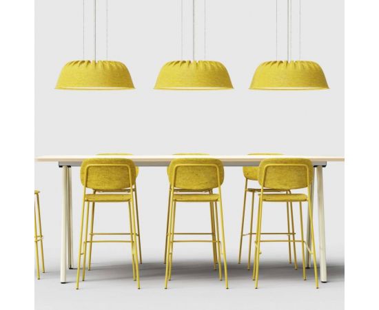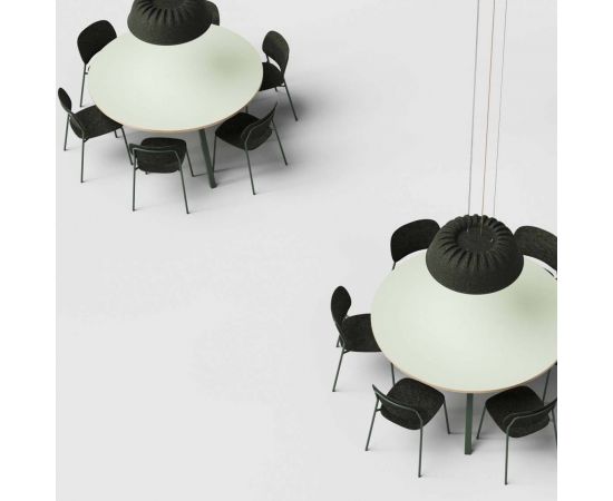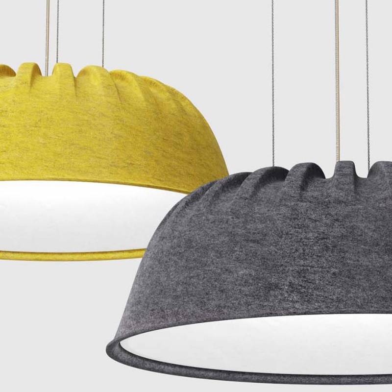 Благодаря своей щедрой форме купола и графическому выражению, лампа Fost предлагает комбинированное решение для акустики и освещения. Абажур PET Felt имеет мягкую текстуру и смелый ребристый узор снаружи, а внутренняя поверхность выполнена из мягкой белой ткани. Обволакивая светодиодный модуль, ткань мягко рассеивает свет вниз, даря манящее ощущение уединения и спокойствия всем, кто находится под лампой.