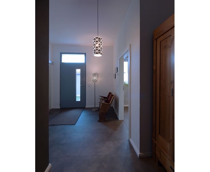 Многограннjt зрелище - благодаря своим прорывам в треугольной форме угловой белый рассеиватель подвесного светильника Asterope создает многогранную игру света, которая гармонично вписывается практически в любую обстановку. Источником света является одиночная лампа E27 с максимальной мощностью 60 Вт.
