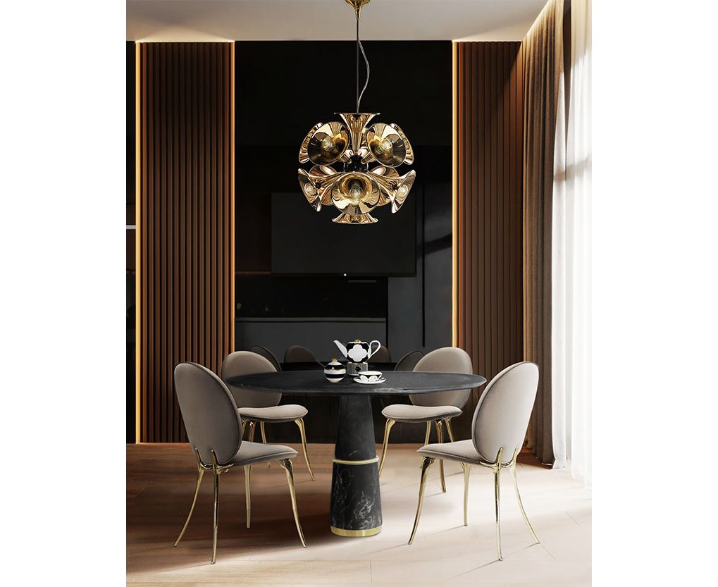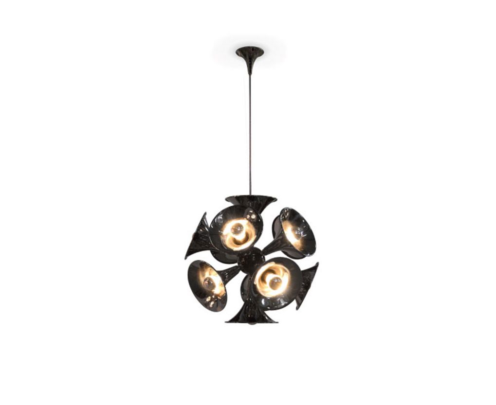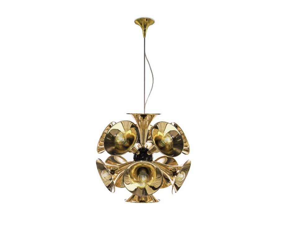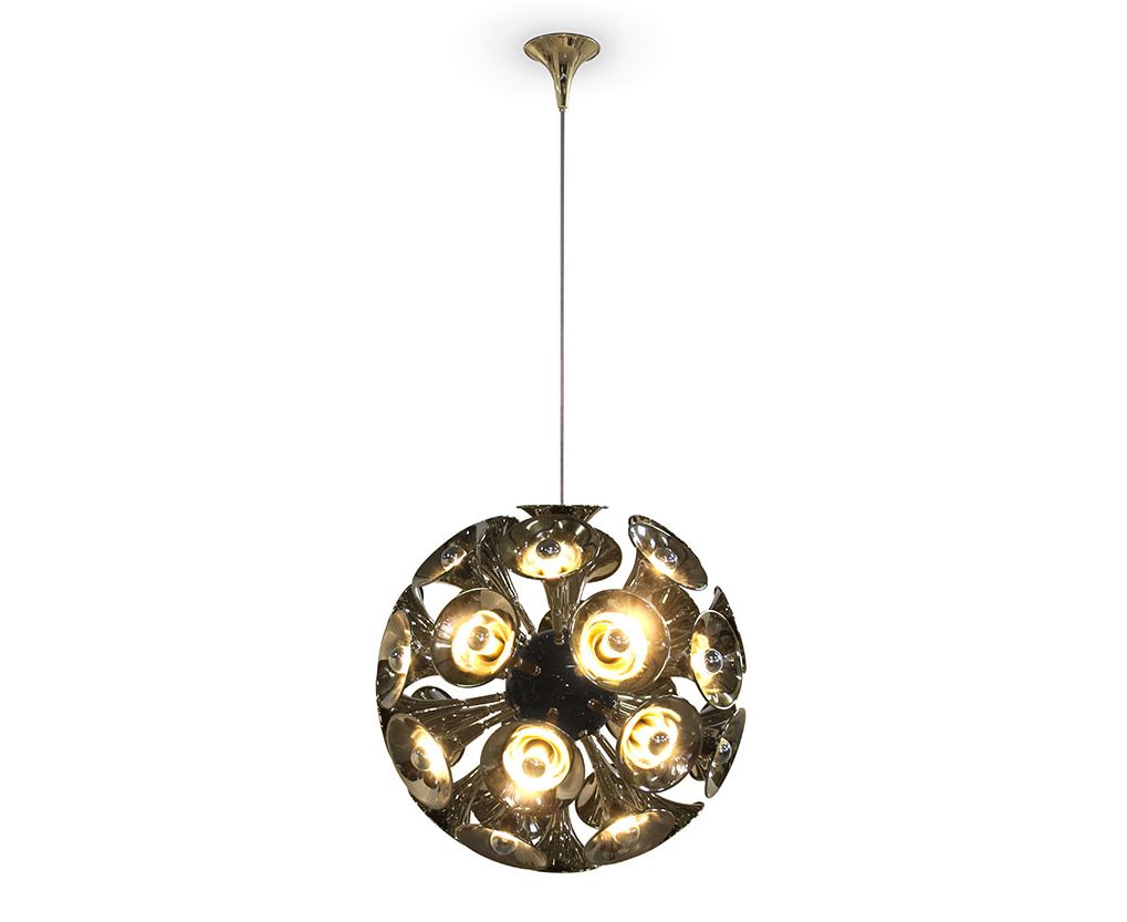 Вдохновленная американским трубачом Крисом Ботти и созданная как дань уважения джазовой музыке, подвесная лампа Botti Pendant представляет собой немного уменьшенную версию люстры Botti. Она имеет 15 плафонов в форме труб, которые простираются от центра, создавая идеальную сферу. Выполнена вручную из латуни и покрыта позолоченной отделкой. Круглое основание в центре выполнено вручную из алюминия и лакировано глянцевым черным, но оно также может быть покрыто белым, чтобы удовлетворить потребности самых изысканных интерьеров. Этот подвесной ар-деко светильник лучше всего подходит для винтажной гостиной или современной спальни.