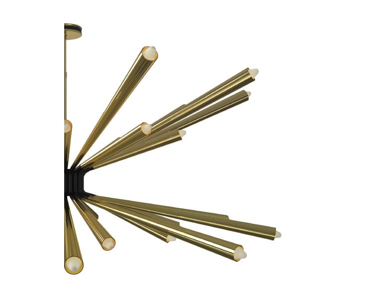 Вдохновленная знаменитым джазовым трубачом Томми Дорси, эта подвесная mid-century люстра является уникальным светильником, который воплощает в себе стиль музыки 50-х годов. Dorsey — это люстра ручной работы с алюминиевыми абажурами, сочетающая в себе проверенные временем технологии и современный опыт высокого мастерства. Телескопические трубки, составляющие корпус, имеют позолоченную отделку, а абажуры и центр окрашены в матовый черный цвет. Эта уникальная люстра, идеально подходит для вестибюля mid-century отеля или ресторана в стиле ар-деко. Она также может быть использован в частных домах, особенно в качестве светильника для столовой.