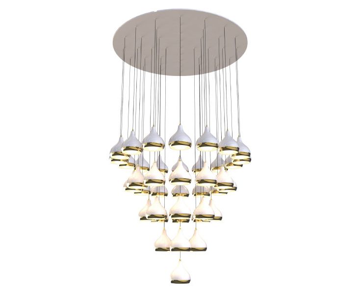Современная люстра Hanna — это потрясающий дизайн освещения, выполненный из латуни и алюминия с позолоченными и белыми матовыми плафонами. Добавьте её в ваш современный декор в качестве шикарного акцента. Эта белая подвесная люстра является также идеальным вариантом освещения, чтобы дополнить винтажный и промышленный декор. Позолоченная отделка добавит шикарный штрих любому домашнему декору. С 25 подвесными лампами, подвешенными на черных шнура, мы рекомендуем использовать лампочки E27. Вы также можете использовать её в комбинации с диммером для достижения желаемого эффекта.