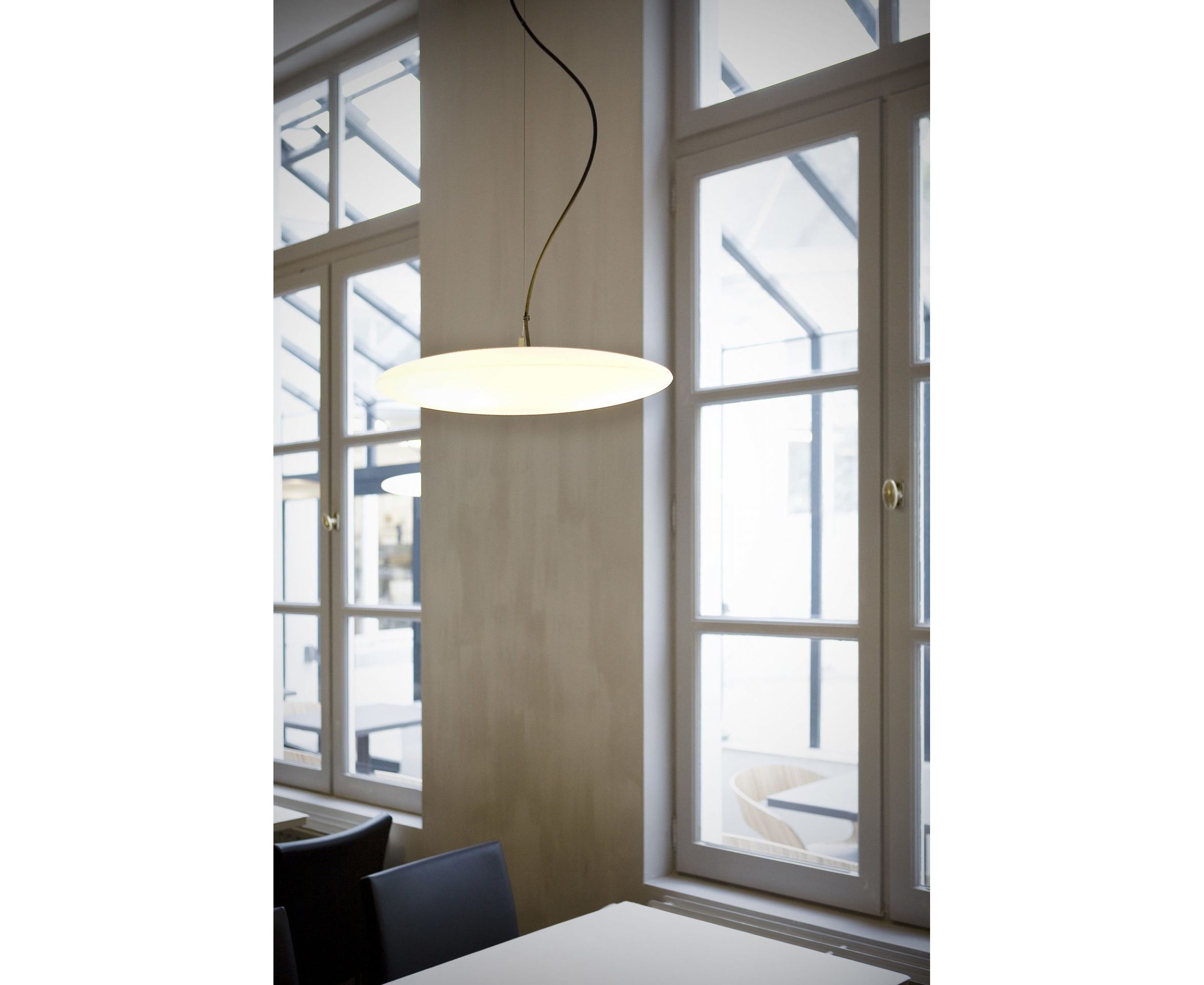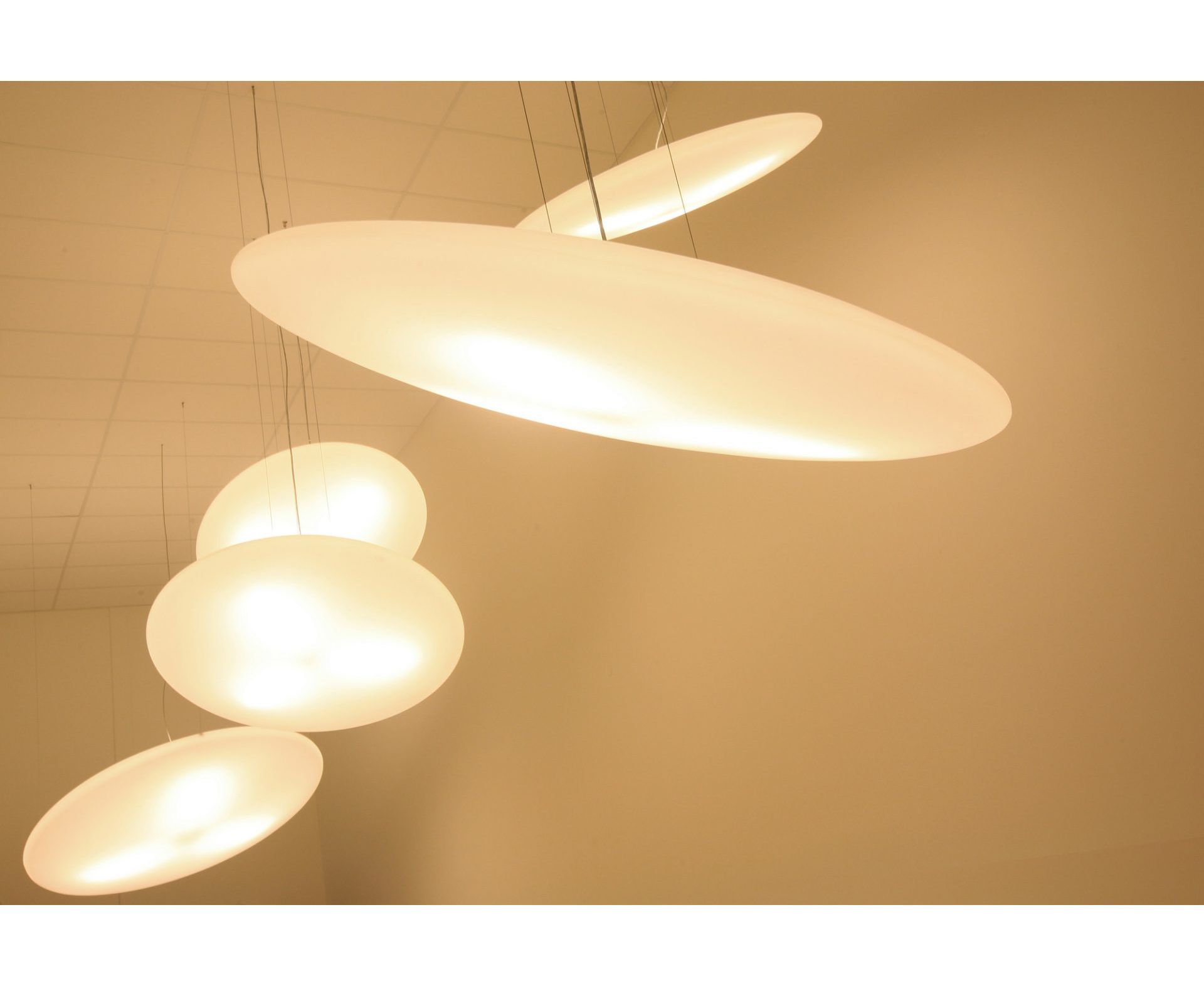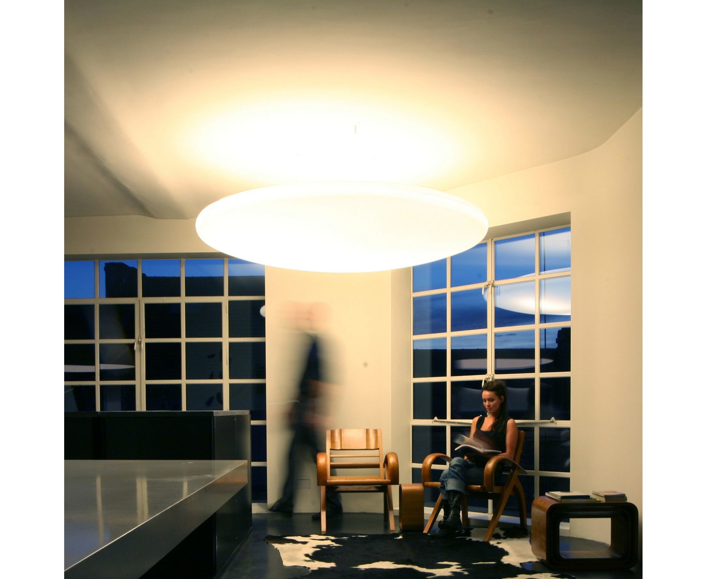 Люди всегда были очарованы светом совершенного круга. Возвращающаяся полная луна и природные явления, приписываемые ей (более высокий процент родов, плодовитость, трансформация от человека к животному и т. д.), Архетипическая форма НЛО, форма гонга, солнце и т. д., - это лишь несколько поразительных примеров. Несмотря на свою форму полного круга (полная луна), лампа может использоваться в нескольких положениях: по горизонтали, по диагонали, наклонно или вертикально (глупая луна). Благодаря своим большим размерам, лампа легко узнаваема и имеет возможность разграничения или создания пространства. Лампа также имела очень символическое значение из-за навязанной абстракции.